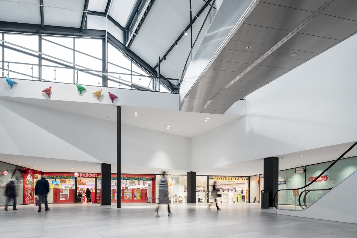 Alle bestaande winkelpanden op de begane grond werden tot op het casco gestript. Vervolgens is gestart met de herverdeling van het winkelcentrum, zijn er nieuwe aluminium gevels geplaatst en staat bij dit alles flexibiliteit voorop.