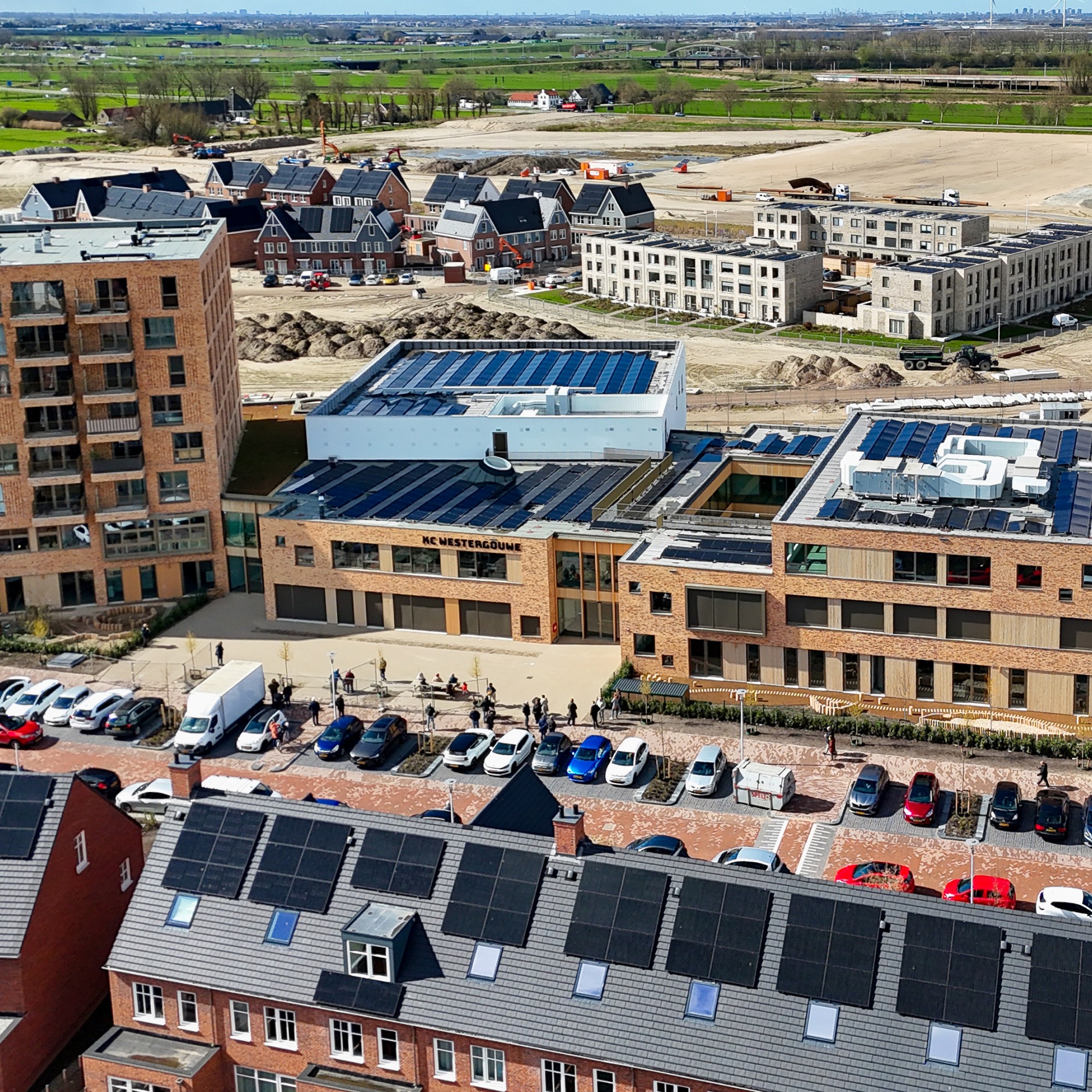 In de nieuwbouwwijk Westergouwe in Gouda is onlangs het nieuwe voorzieningencluster in gebruik genomen: een energieneutraal complex met een kindcentrum, sportvoorzieningen, een parkeergarage Ên 42 appartementen. Een bijzondere combinatie van functies die vroeg om slimme constructieve oplossingen.