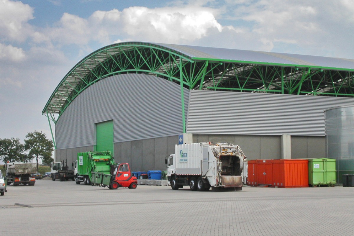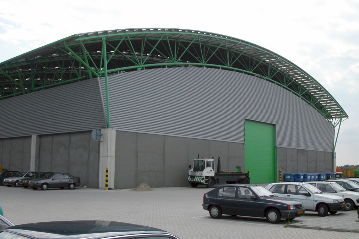 The construction principle comprises three-dimensional curved steel framework trusses with a span of 50m on a concrete base.