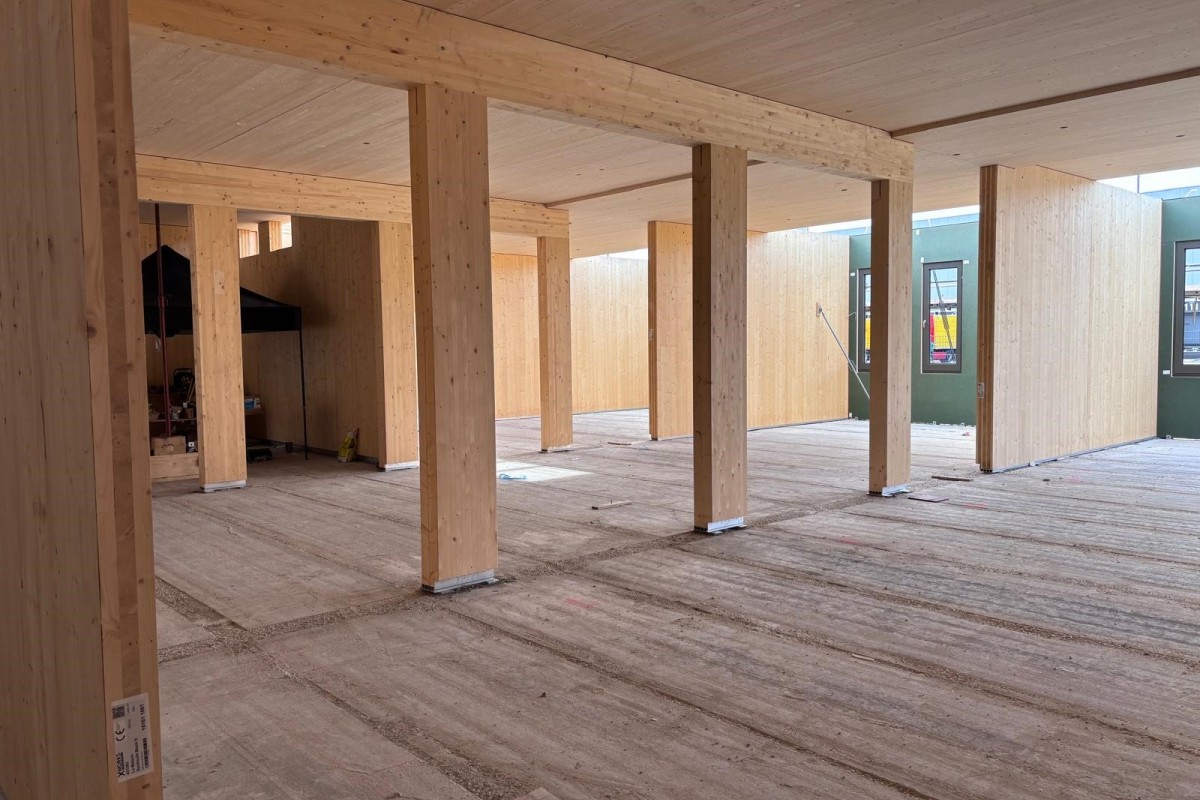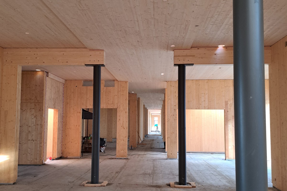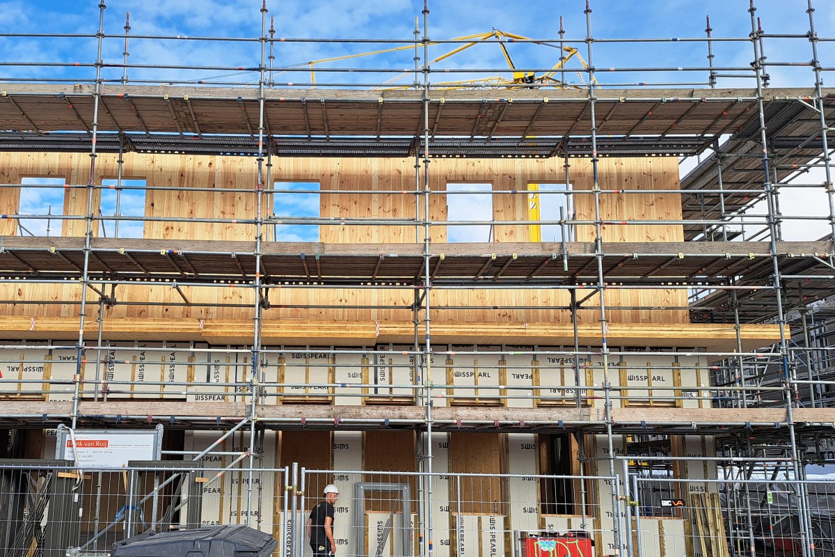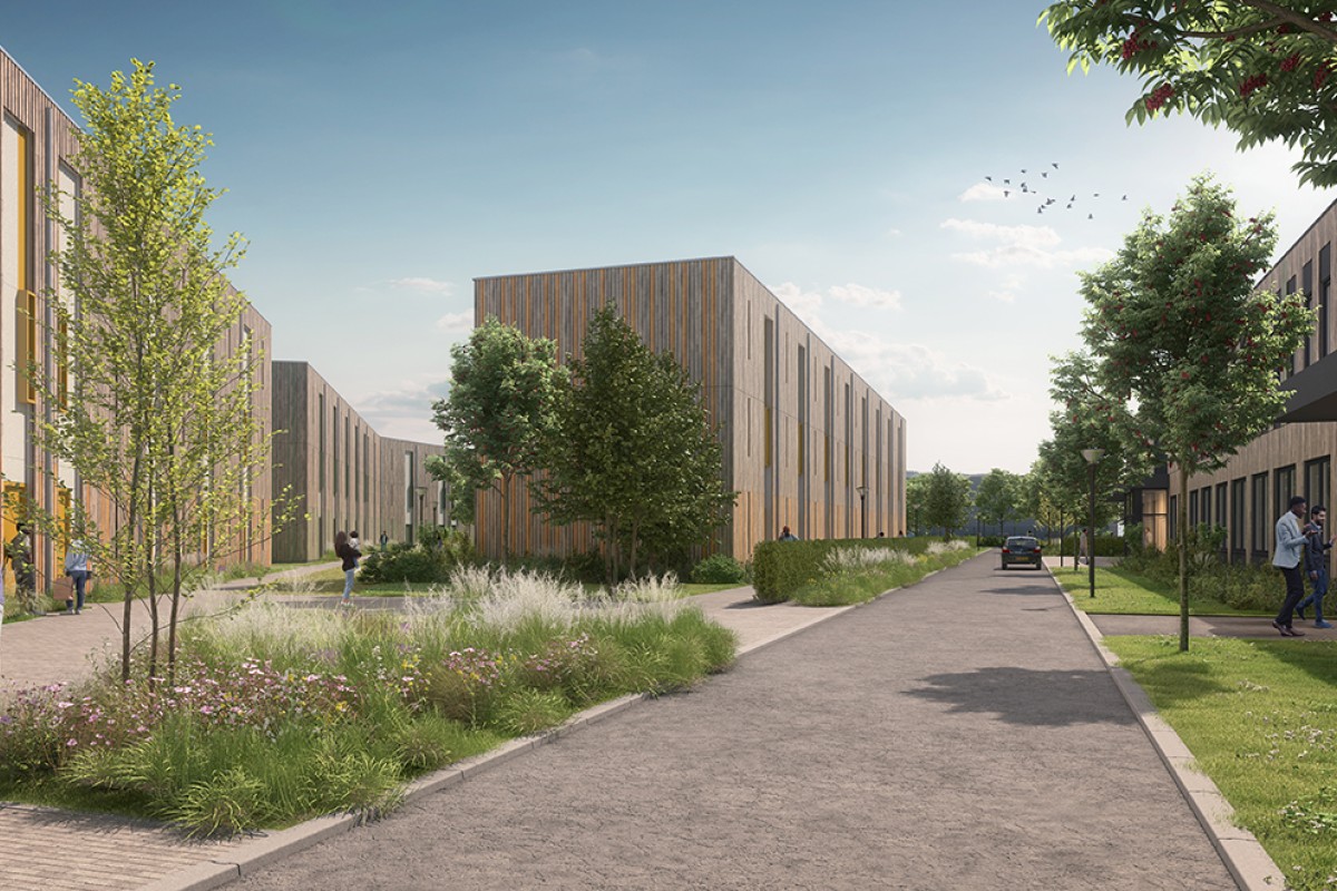 Houtbouwcomplex met een bvo van ca. 12.000 m2 met 9 woongebouwen in 3 bouwlagen en een hoofdgebouw in 2 bouwlagen.
