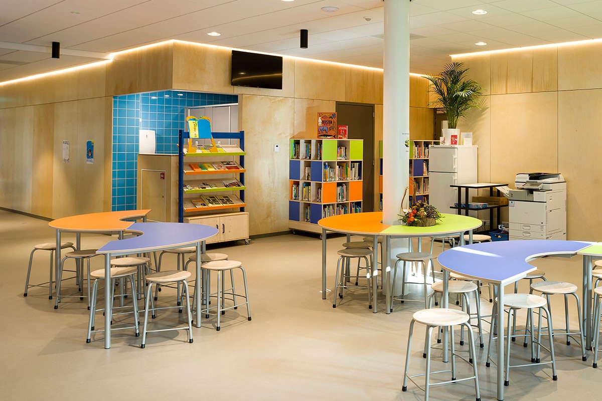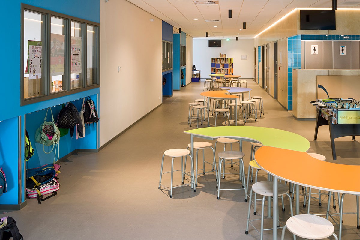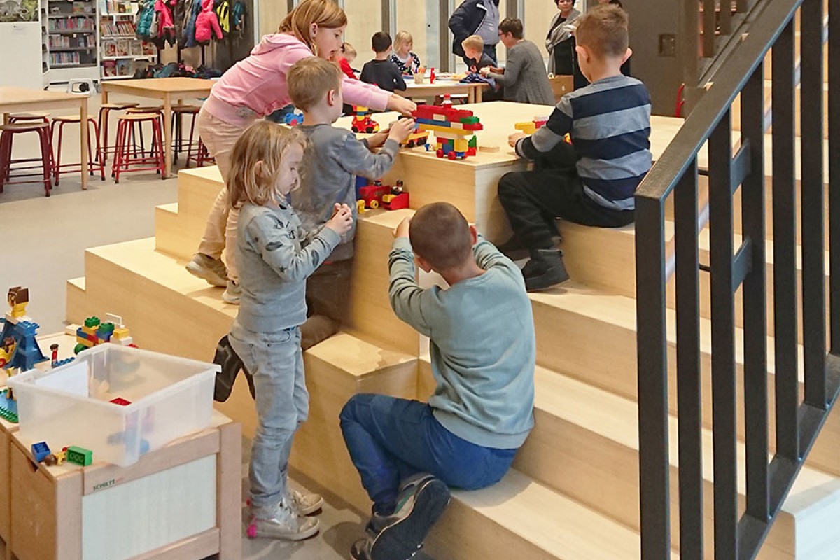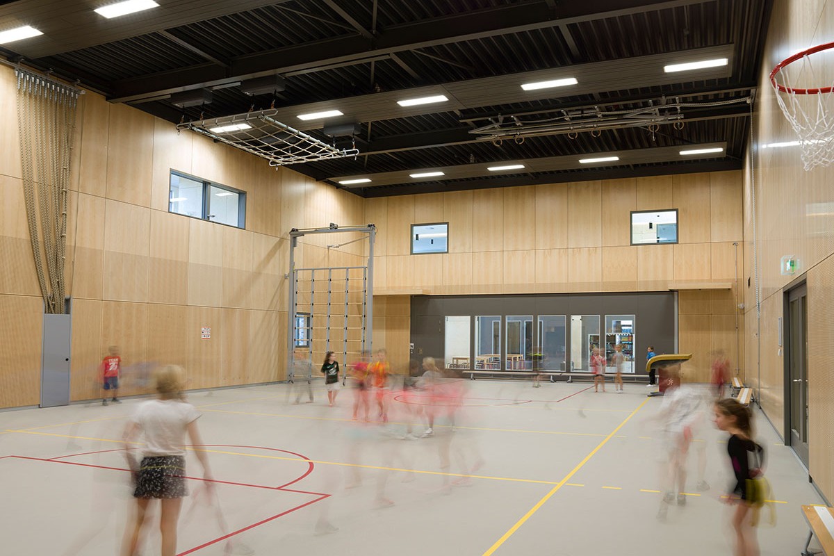 Two primary schools, a day-care centre, a gymnasium, and a library converge at this site, with a auditorium as a central facility (3,850m² GFA).