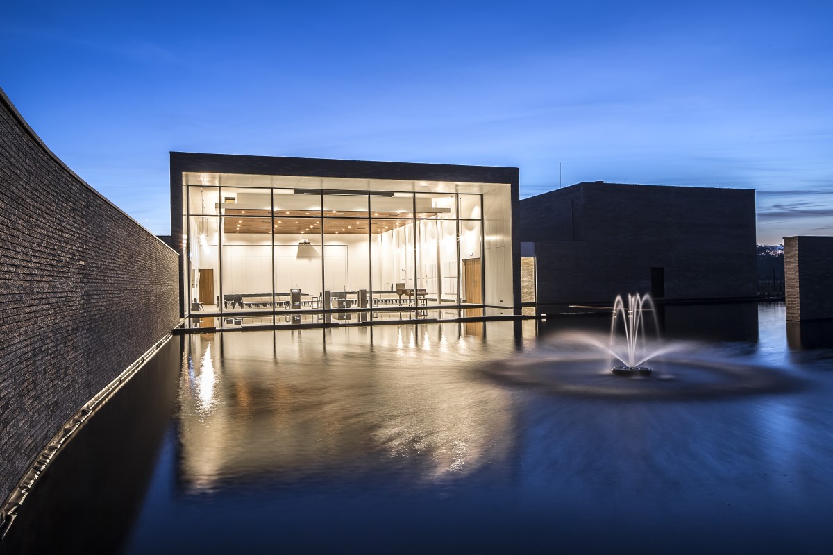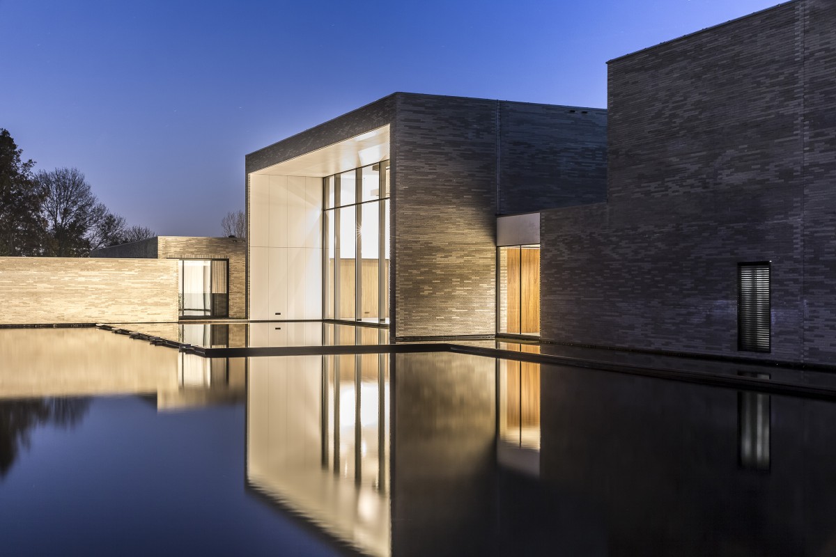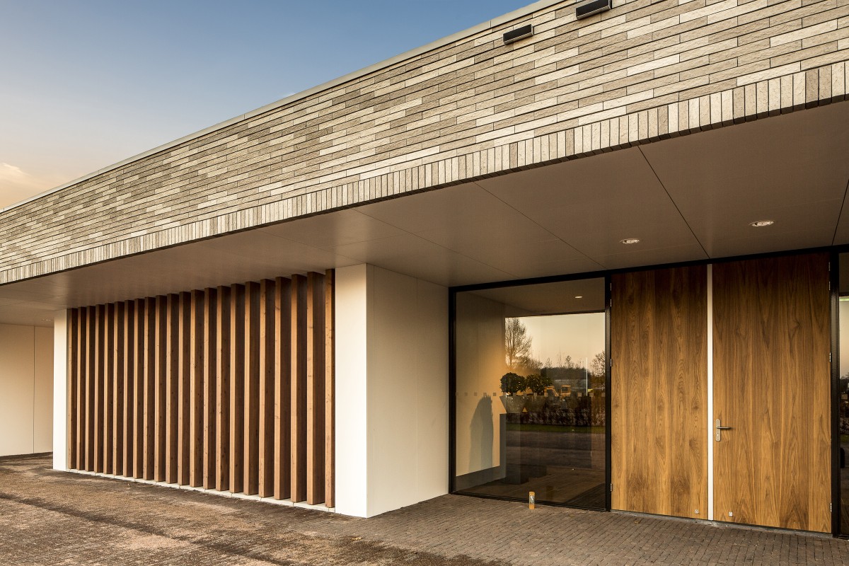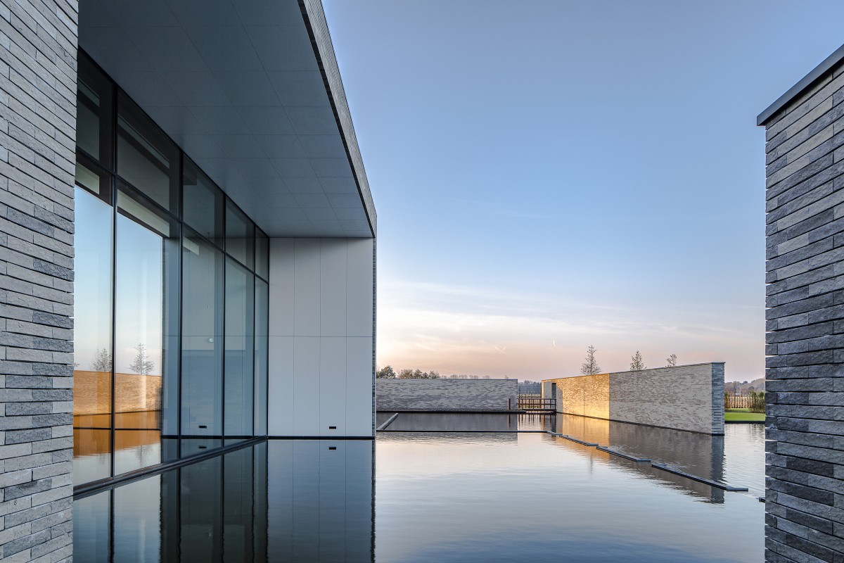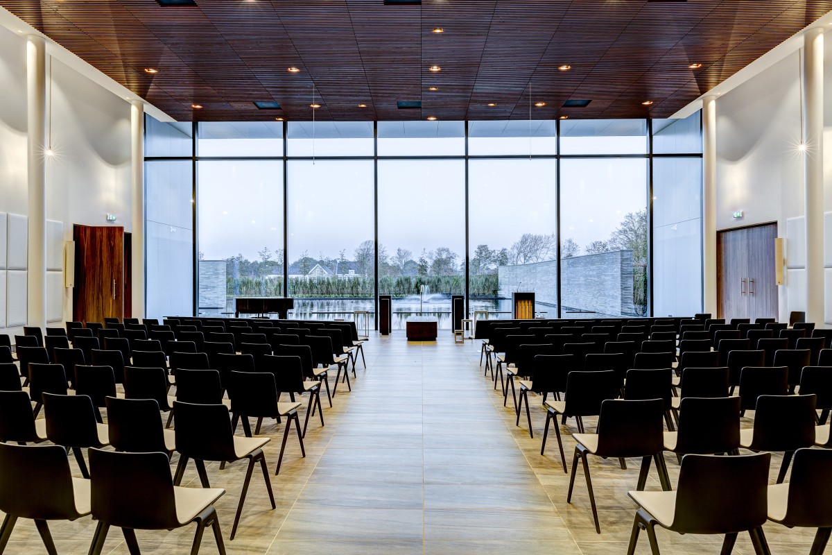 The new 3,200m² crematorium has 2 reception areas and 2 auditoriums with 180 and 70 seats, respectively.