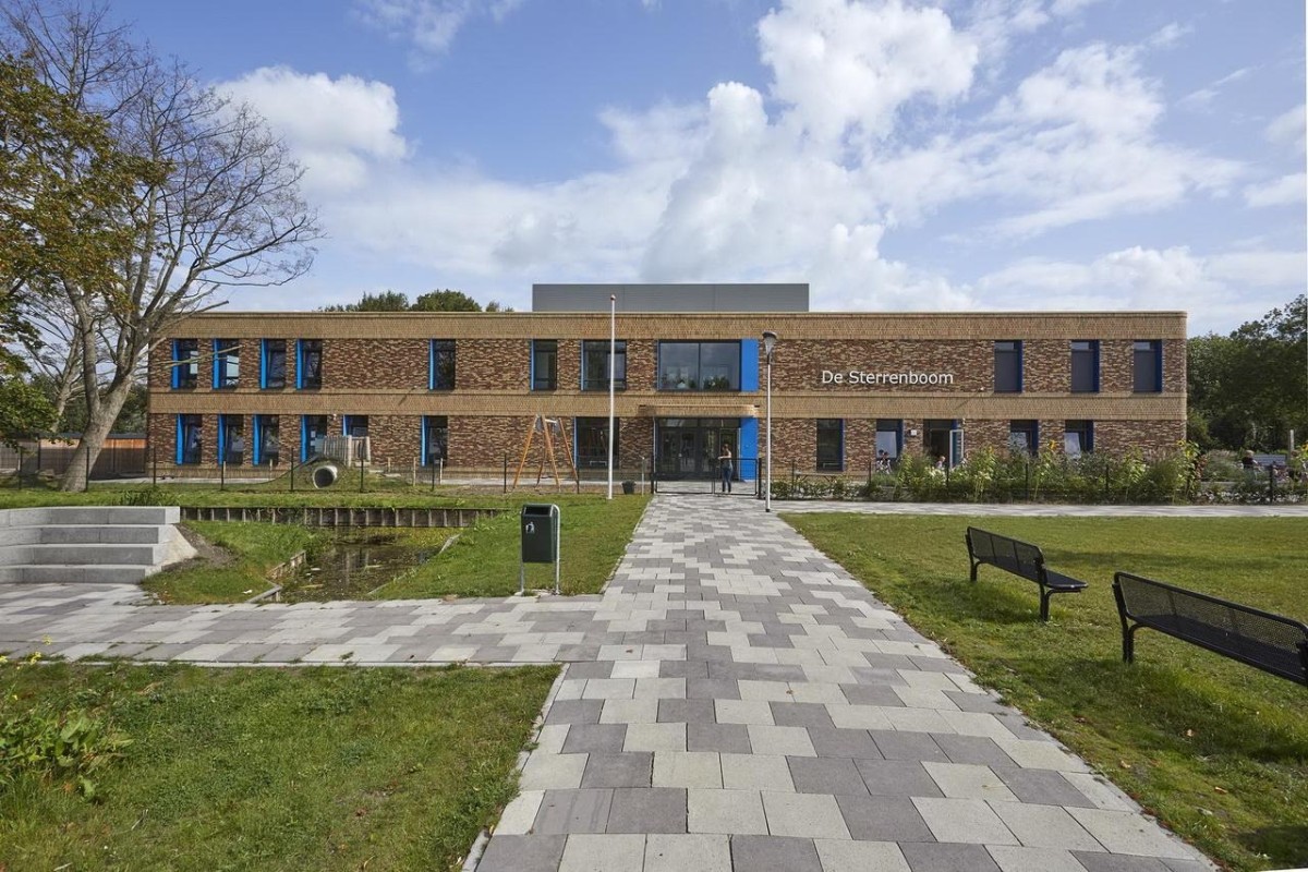 The new primary school, with a GFA of approx. 1,500m², consists of a rectangular, functional and flexible two-storey volume.