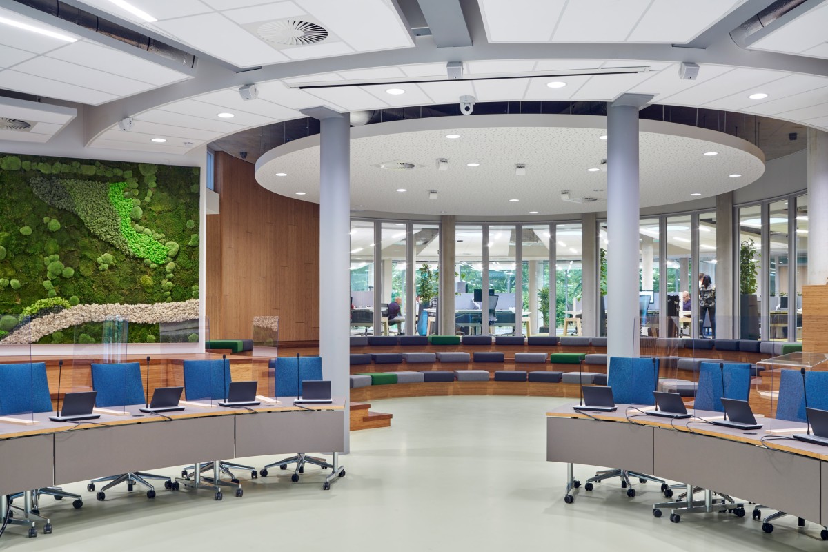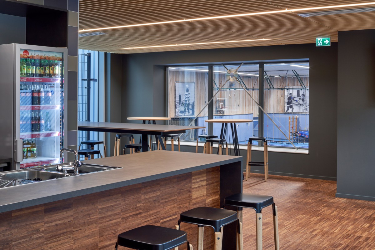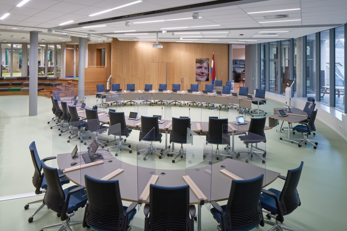 To support the footbridge, prefabricated piles were used, which rest on an intermediate layer of sand. "To prevent too much settlement during the building life, the town hall itself is founded on a deeper sand layer," says Van den Berg. "In order to overcome pile driving vibrations to the metro line, 32-metre long HEK combi piles were used. In addition, the footbridge and the town hall are dilated. So the structures can deform independently of each other." The concrete foundations and concrete floors were poured entirely on site, he explains. "This was mainly because of the special shape, the level differences of the various functions and the physical construction cut that had to be made. The underside of the storey floors is visible. Therefore, the floor that extends to the outside could not be insulated. In order to prevent a thermal bridge from the underside of this second floor, an Isokorf thermal bridging system was installed. The floor is also engineered in such a way that it can still support the entire floor as if it were a cast-in-place floor."