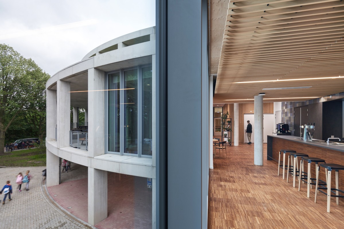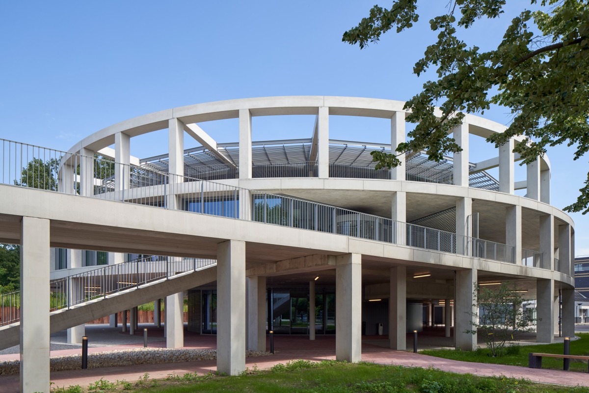 For architectural firm Gortemaker Algra Feenstra and on behalf of the municipality of Albrandswaard, SWINN designed the entire main load-bearing structure for the new building. The building, with a surface area of over 2,700 m2 GFA, has a maximum height of 11 metres. At ground level, parking spaces, a bicycle shed, a radio station and facility and technical rooms have been installed, while the first floor accommodates the entrance and public functions. At roof level, the offices of the Stichting Welzijn Albrandswaard, the neighbourhood team, flex-working spaces and a roof terrace for the municipality are clustered. "Initially, the shape of the new building was more complicated, because the round form was staggered on every floor," explains Alexander van den Berg, project manager at SWINN. "For architectural and functional reasons, this was later reduced to the top floor only. To ensure a rough look & feel, structural concrete was also chosen instead of fair-faced concrete."