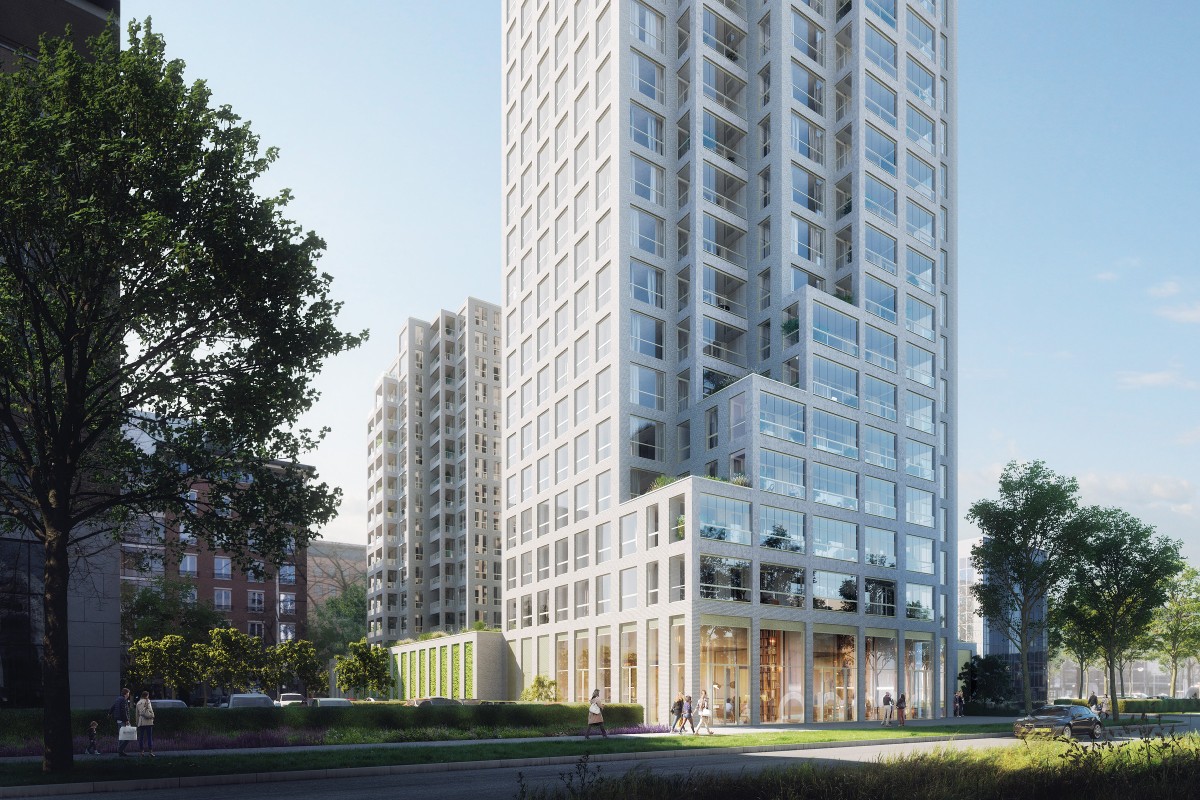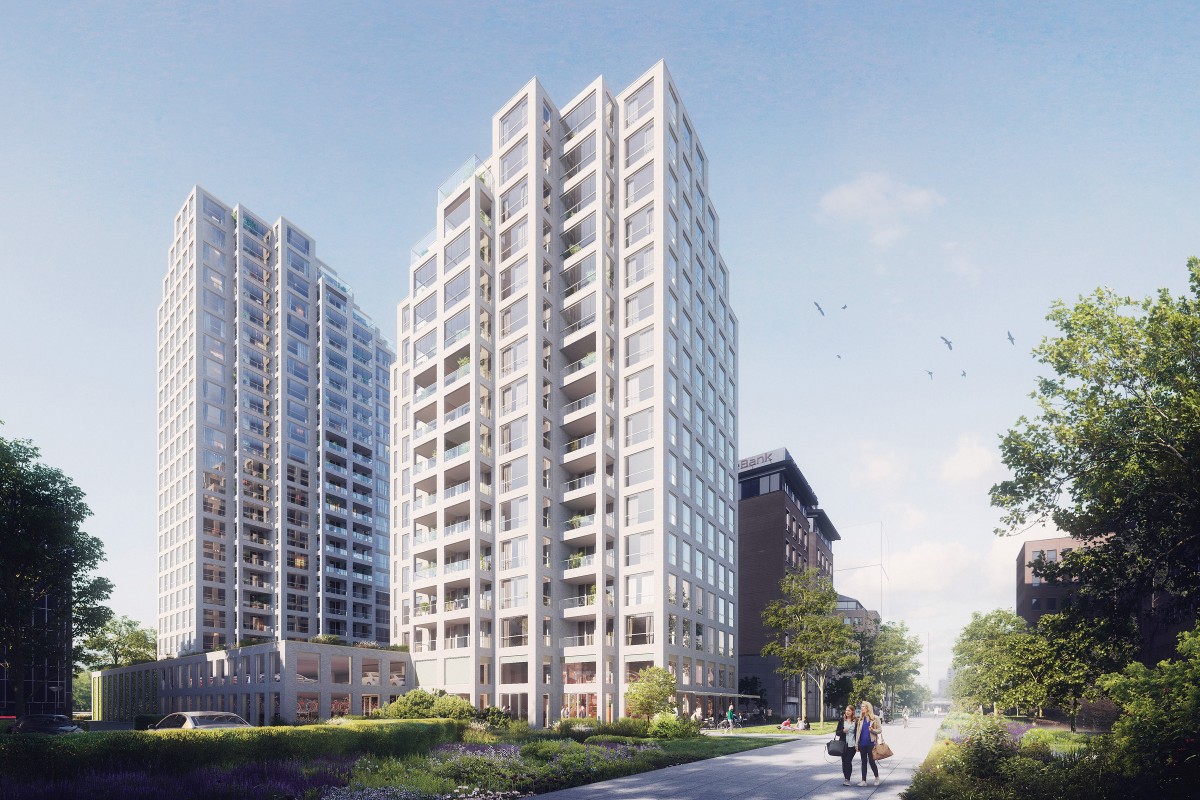 Two geometrically equal towers of varying heights will offer space for 274 homes. A 2-storey car park will be realised on the ground floor.