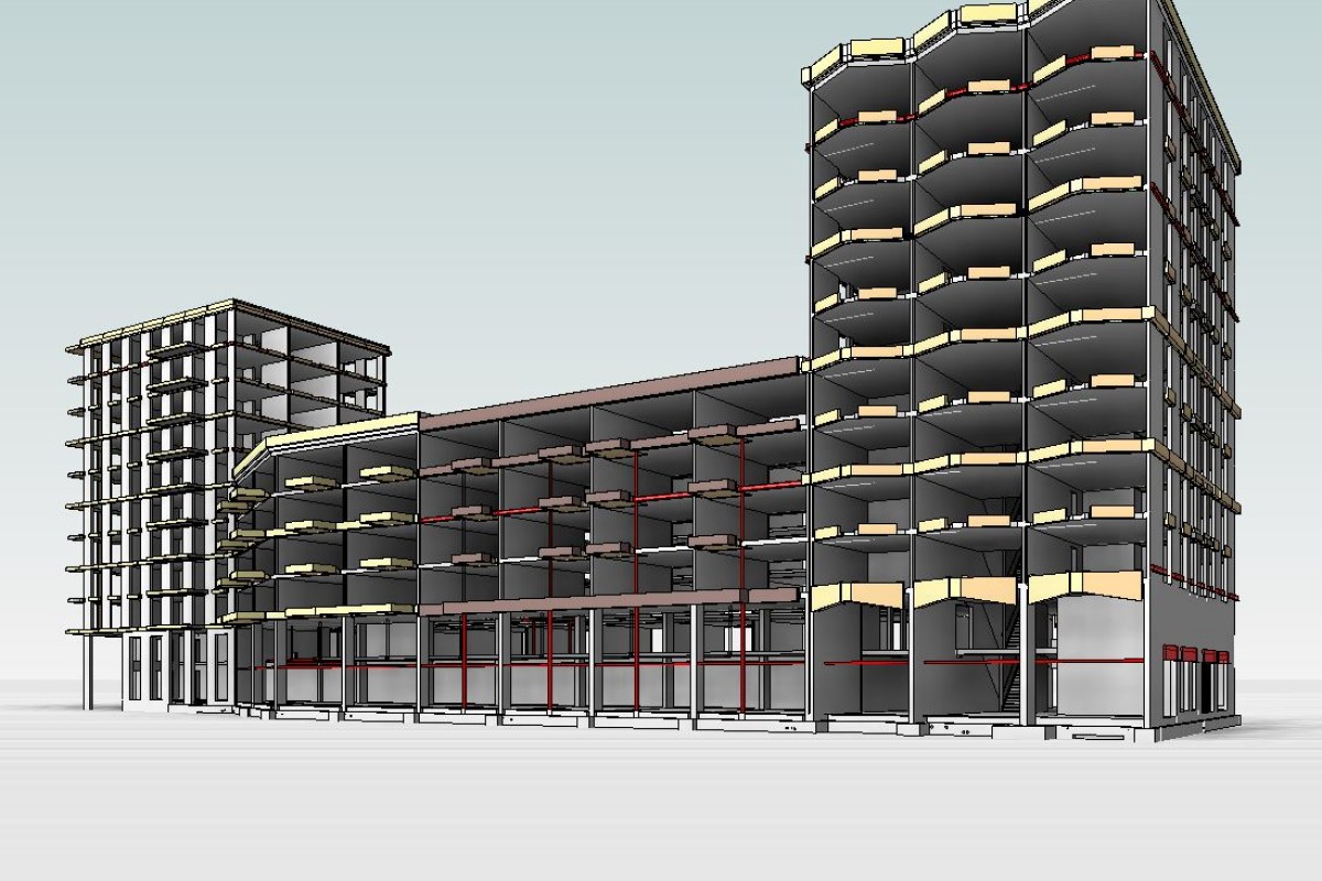 Residential building with 163 flats, a parking garage and a double-height commercial plinth with a total gross floor area of approx. 15,290m².