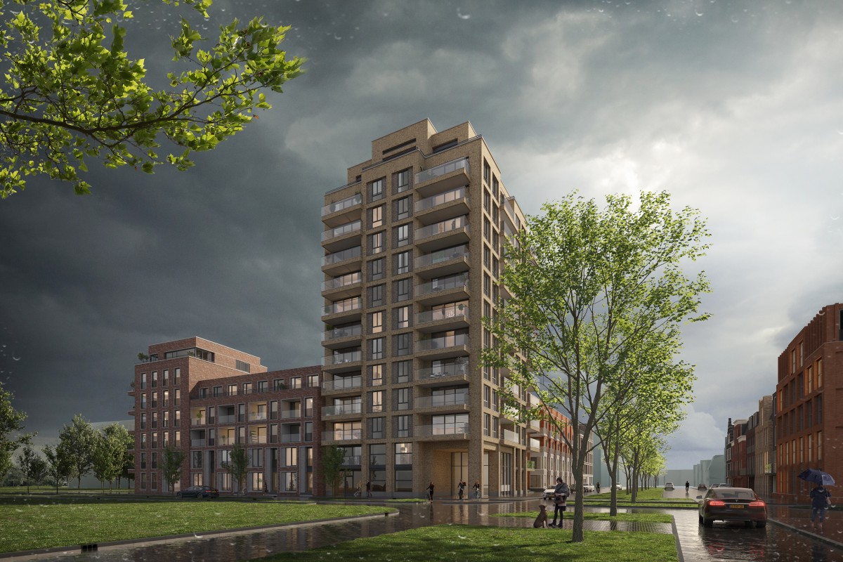 This 14-storey residential contains 153 flats in 5 separate buildings. The car park is situated below the central living deck with gardens.