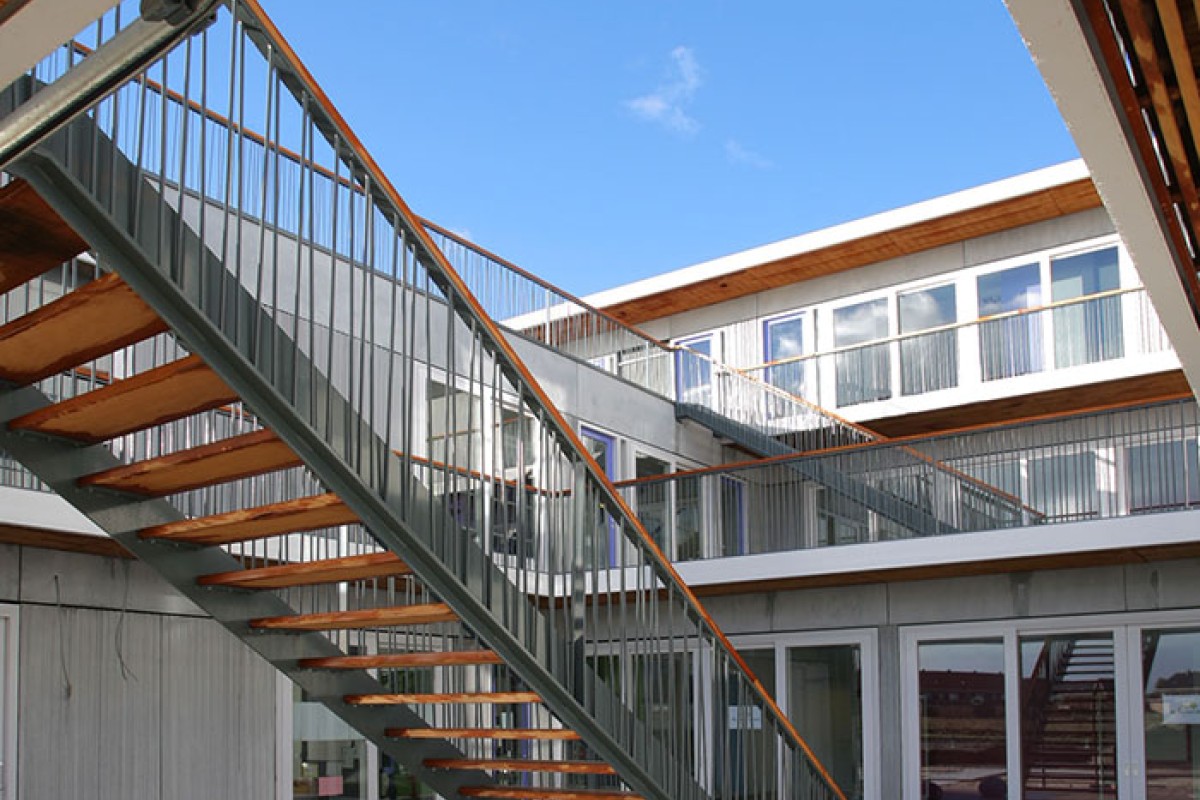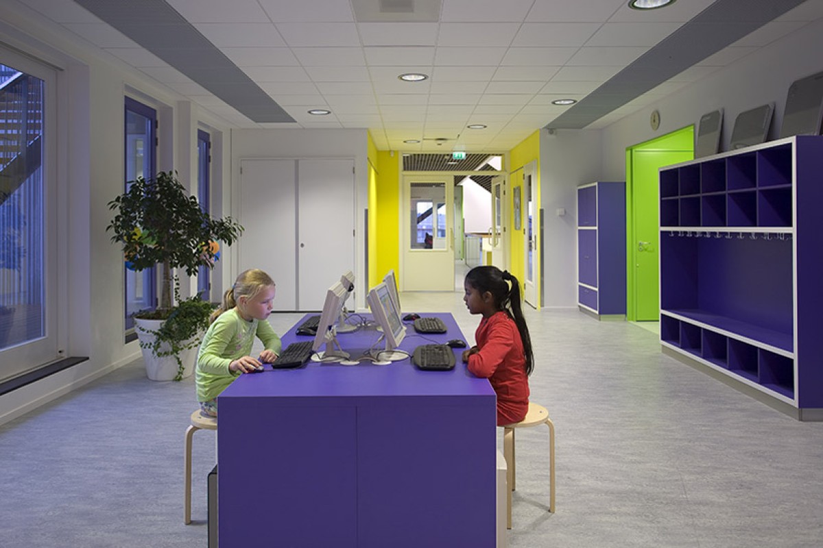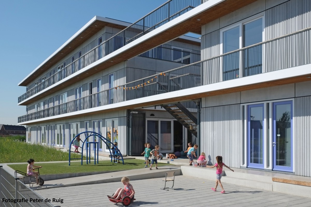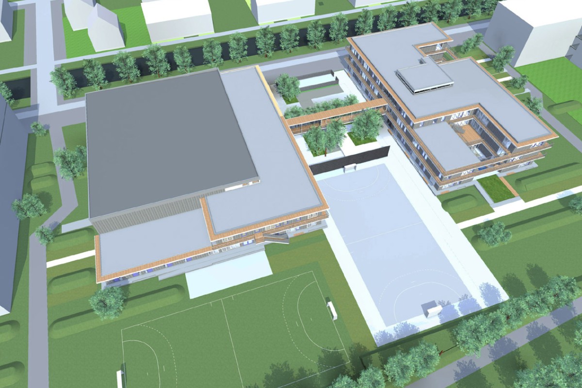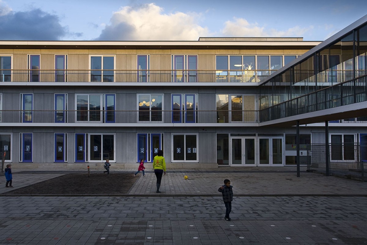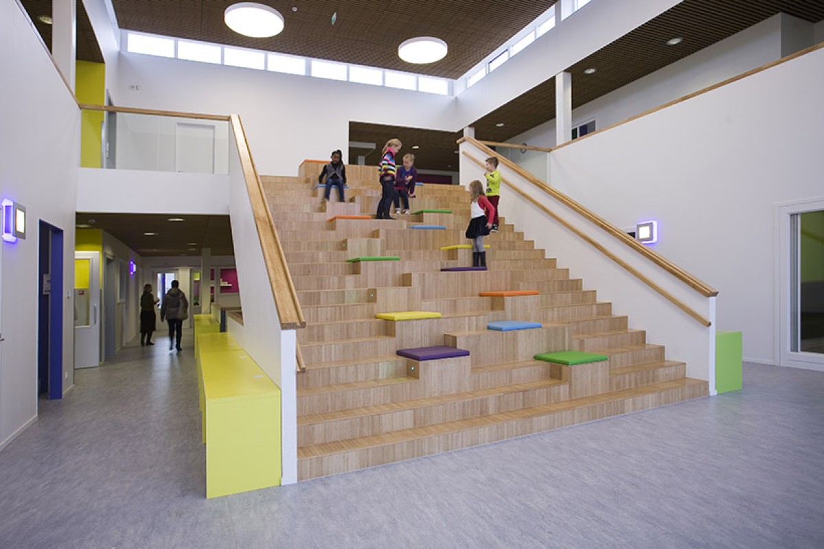 This multifunctional accommodation (7,400m²) houses two primary schools, a children's centre and a sports centre.