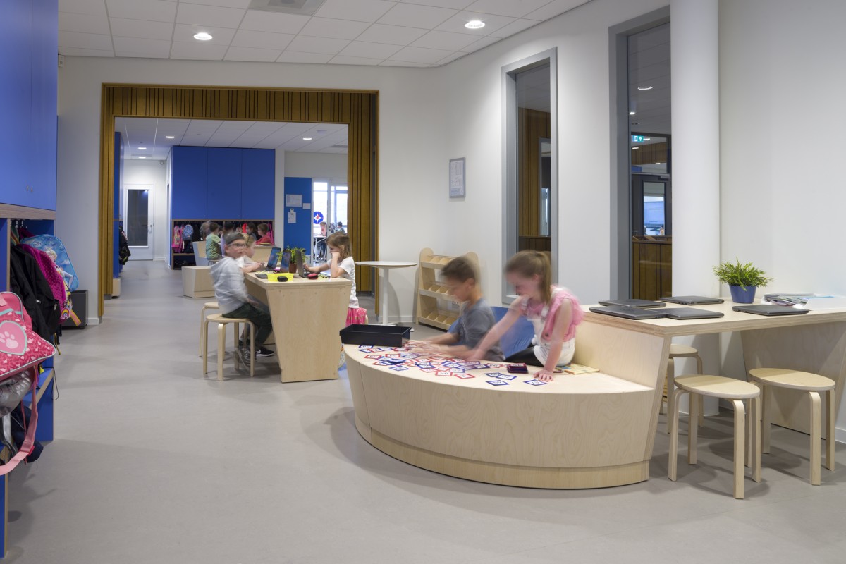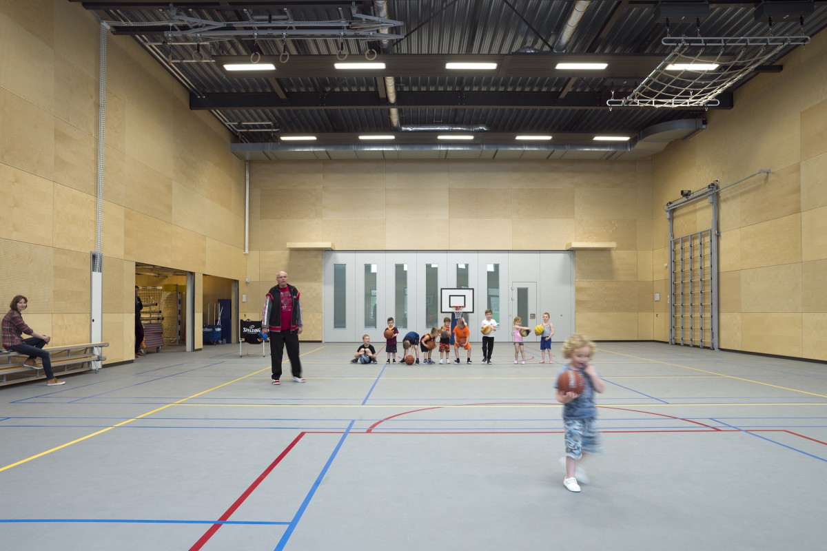 The multi-functional accommodation with a GFA of 3,600m² houses 2 primary schools, a day-care centre, a gymnasium, a library and a village hall.