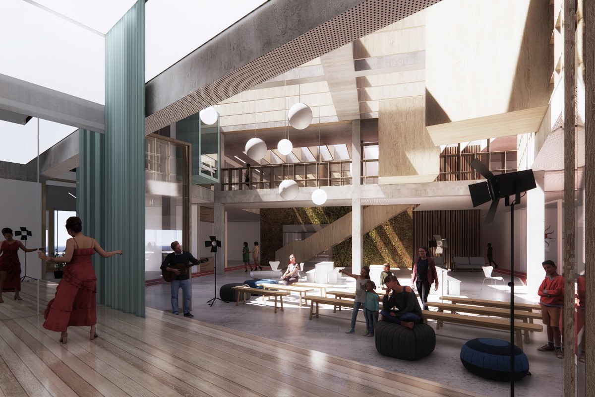 New school building of approx. 4,600m² for secondary education, including a gymnasium, which will be placed in the highest volume.