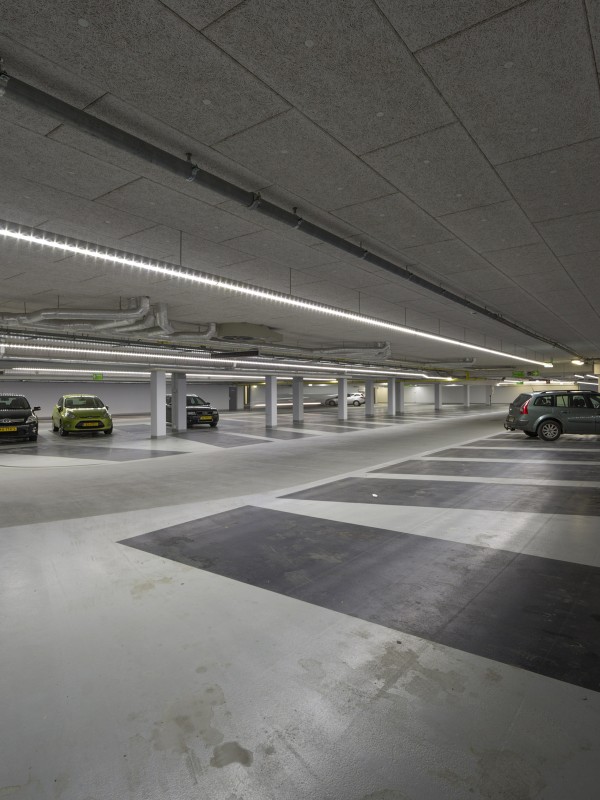 Underneath the newly built section is a split-level car park of approximately 10,000m² divided across 5 storeys, of which 1½ are underground.