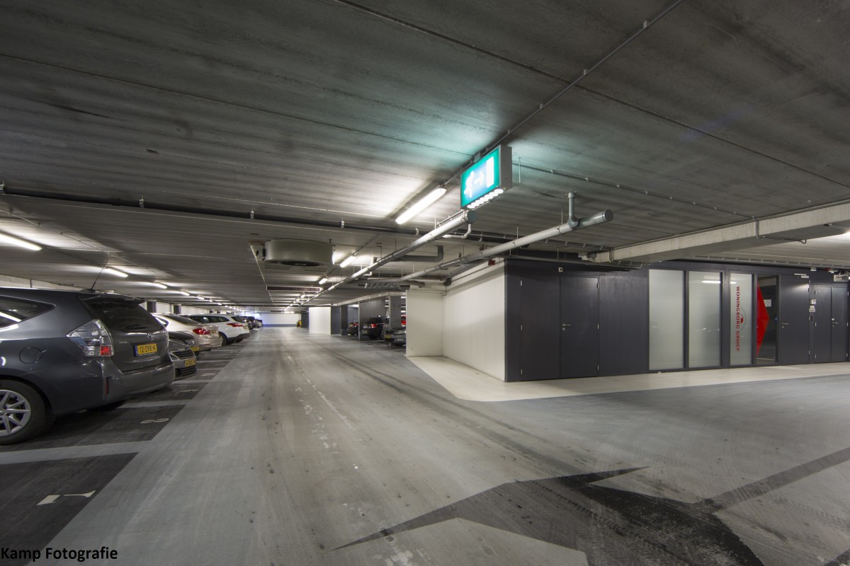 The underground car park and a parking deck at ground level give the users of the three separate GouweZone offices access to sufficient parking space.