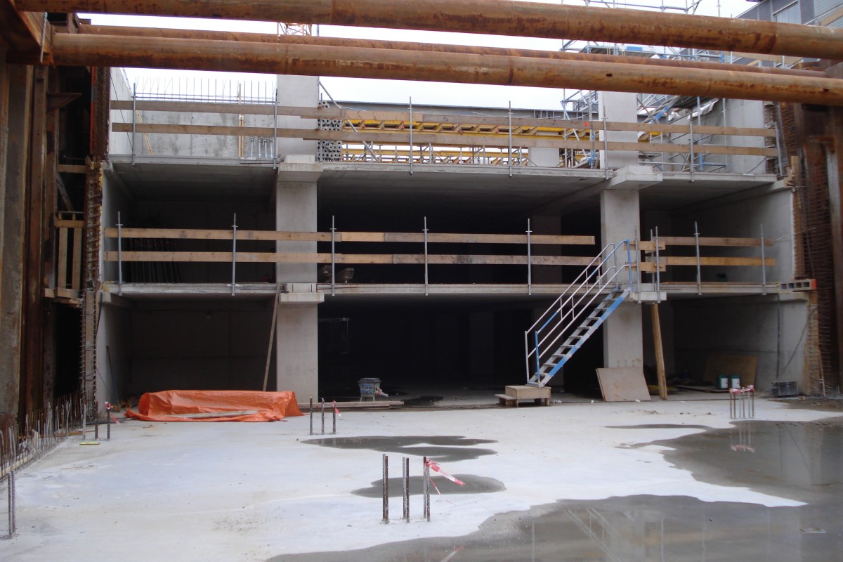 In consultation with the architects, SWINN presented a smart, cost-saving solution that would allow the wooden deck to remain intact. An alternative in the form of a narrow, rectangular, three-storey garage fit nicely adjacent the deck and beneath the building complex. The three-storey garage, with beautiful uninterrupted vertical bearing lines, resulted in incredible cost savings of €500,000. SWINN is always pleased to contribute its inventiveness and expertise to a project by sharing its ideas and knowledge with all the partners involved.