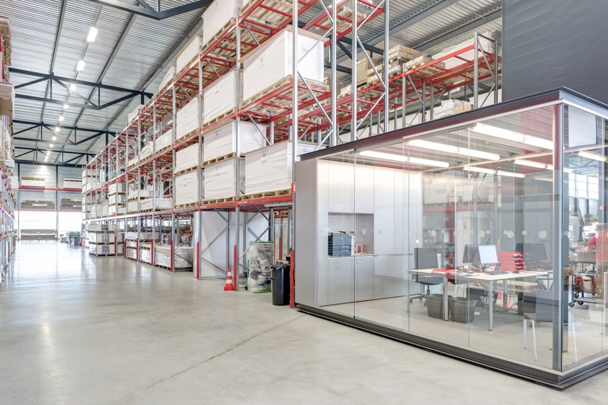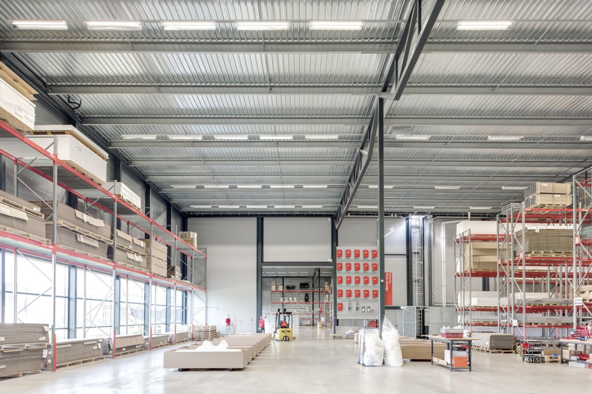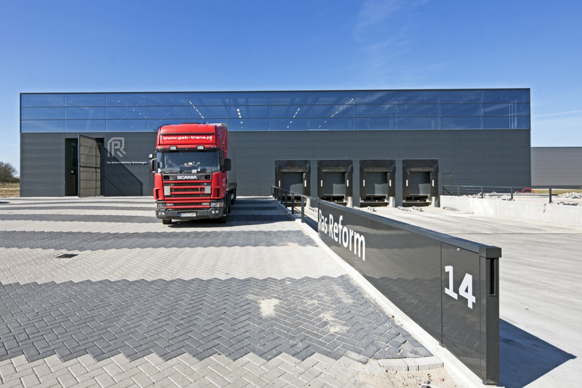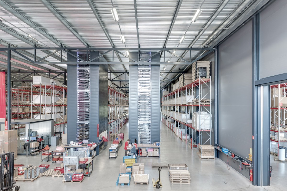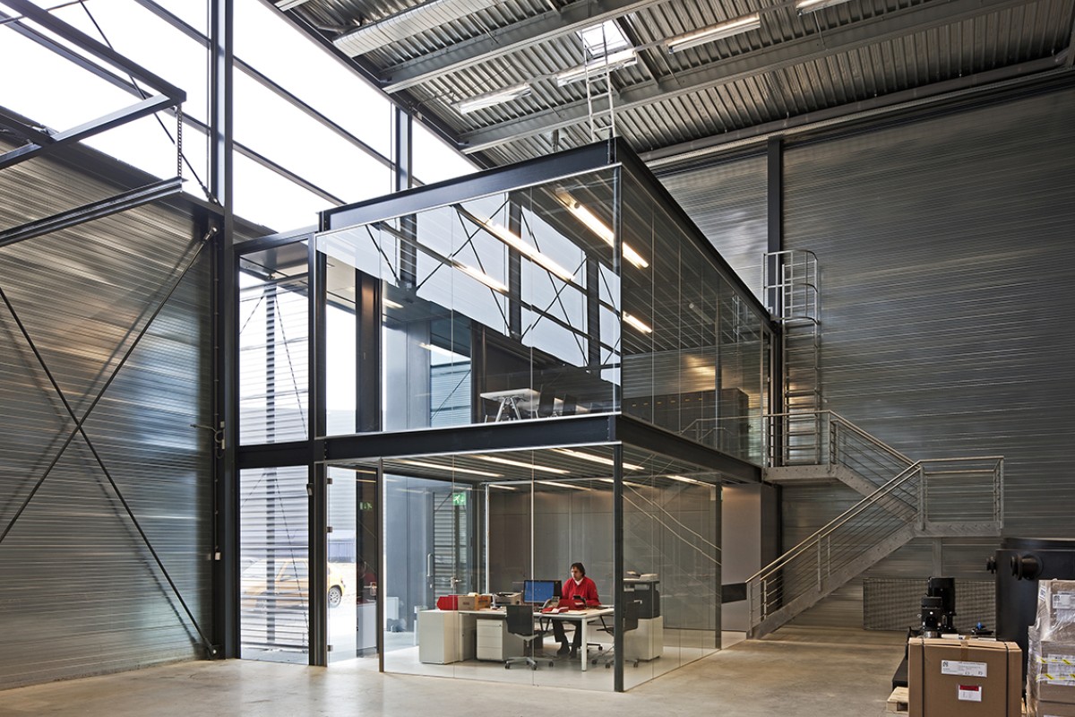 The 8,500m² transhipment/distribution warehouse has the very minimum of slenderly proportioned columns, with the first 25m entirely free of columns.