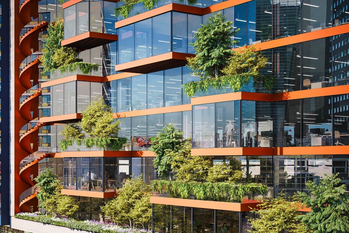A multifunctional building of approx. 45,000 sqm with: 3-storey commercial plinth, 13 storeys for offices and a 1-storey underground car park.