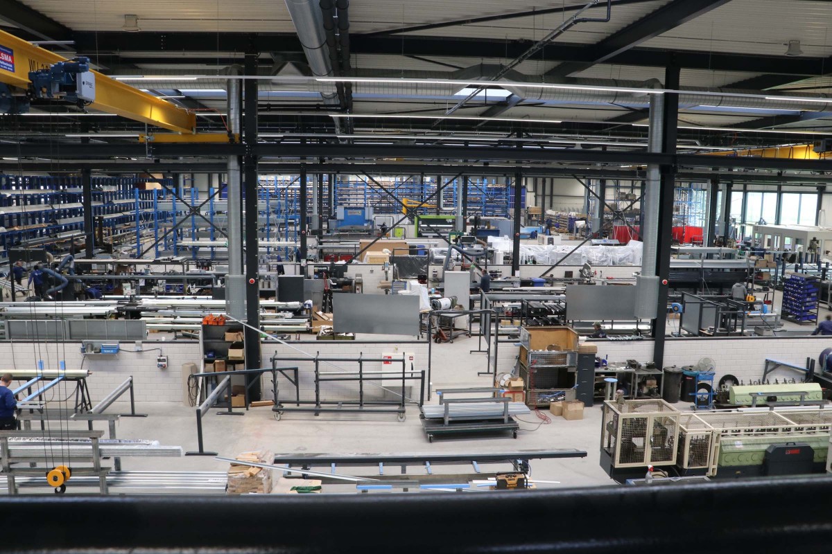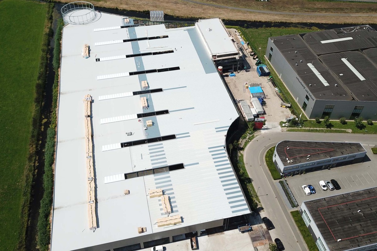 Een bedrijfshal van 11.000 m² voor een modern en geavanceerd machinepark, met een 3-laagse kantoorruimte van 1.500 m² daaraan vast.