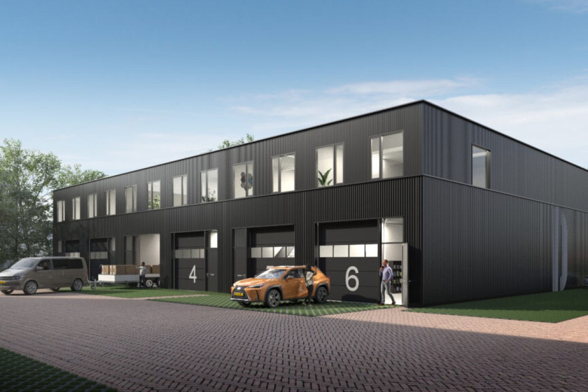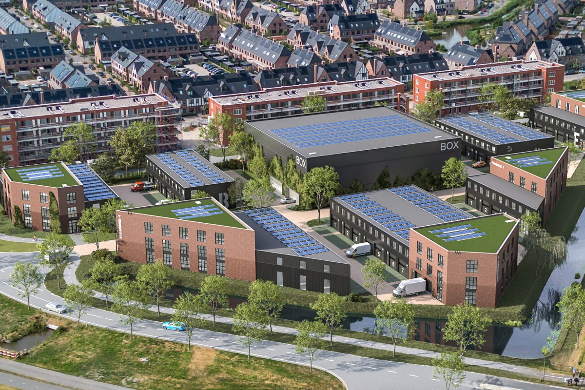 Een nieuw bedrijventerrein met acht bedrijfspanden, 2- en 3 laags hoog, met een totaal bvo van 14.950 m2.