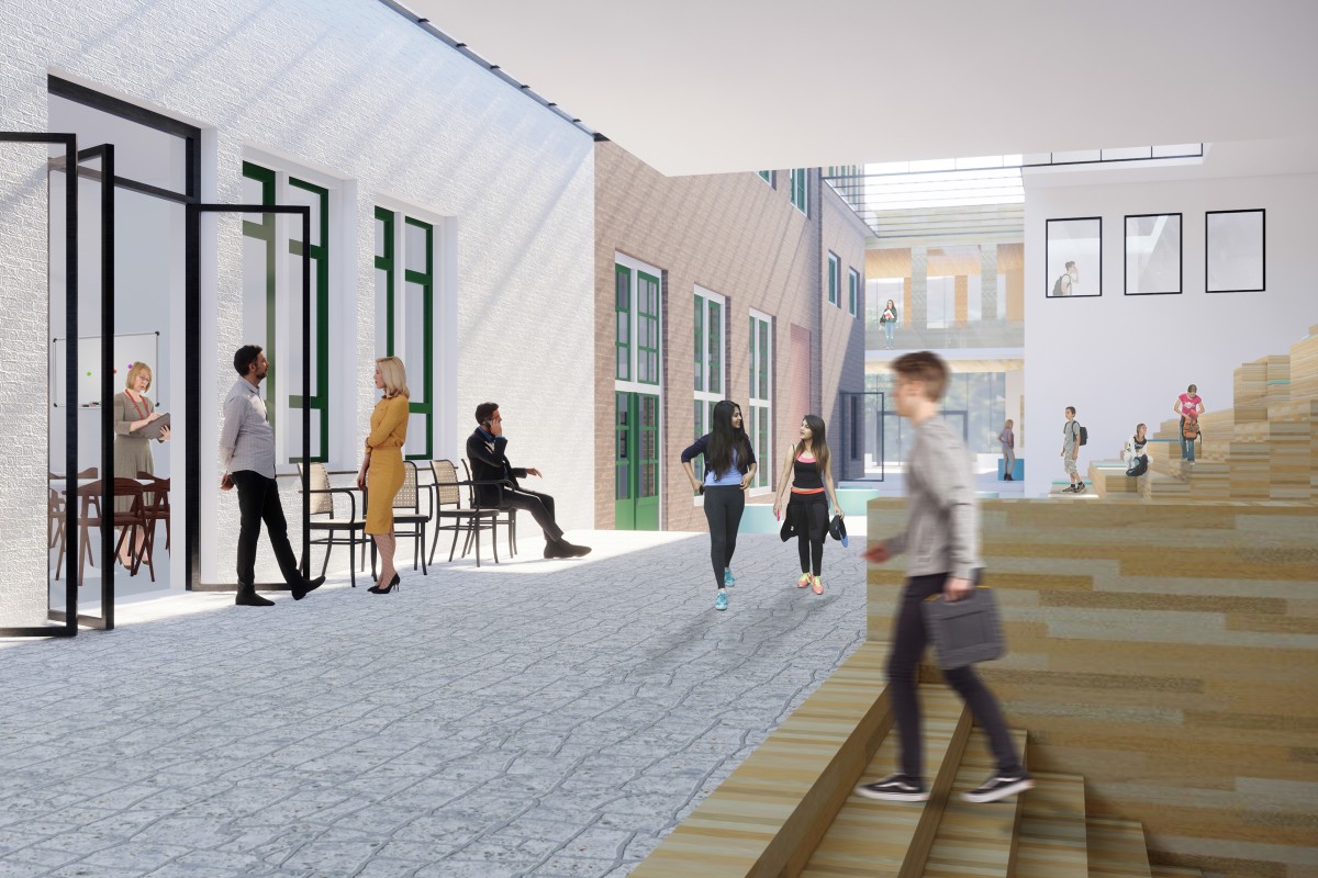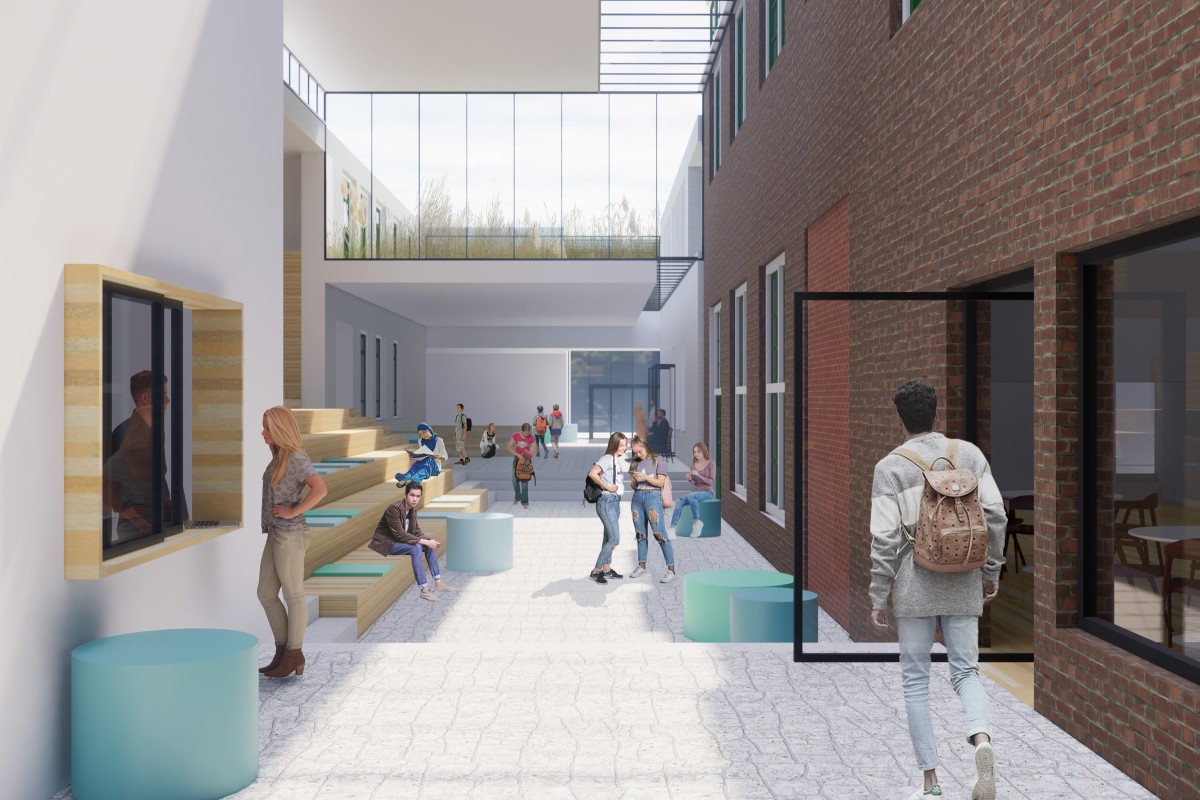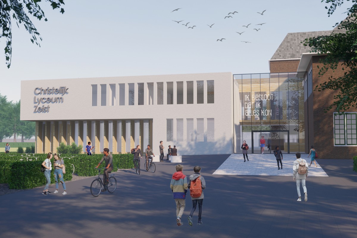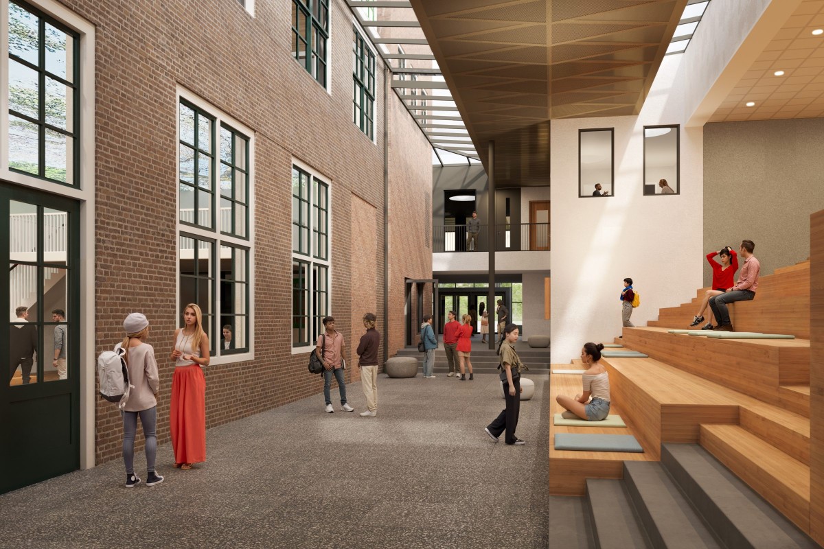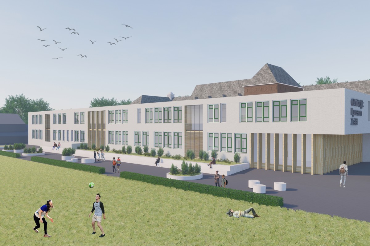 Naast een grondige renovatie van het oorspronkelijke monumentale hoofdgebouw wordt de school uitgebreid met een totaal bvo van ca. 9.600 m².
