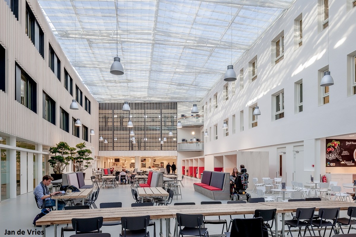 Naast nieuw gecreëerde leerpleinen en ontmoetingsplekken heeft het hoofdgebouw een nieuwe entree gekregen. Ook is de keuken met restaurant compleet vernieuwd. Met een beperkt aantal ingrepen is het hoofdgebouw transparant gemaakt. De nieuwe, verbonden aanbouw met drie bouwlagen draagt door zijn glazen gevel sterk bij aan deze uitstraling. In het glas is bovendien gekozen voor een print die een verbinding legt met de bosrijke omgeving van Ede. In een halfverdiepte kelder is ruimte voor parkeerplaatsen en zijn de benodigde klimaatinstallaties geplaatst. Met twee nieuwe academies, algemene onderwijsruimten en een gymzaal is deze hogeschool klaar voor de toekomst.