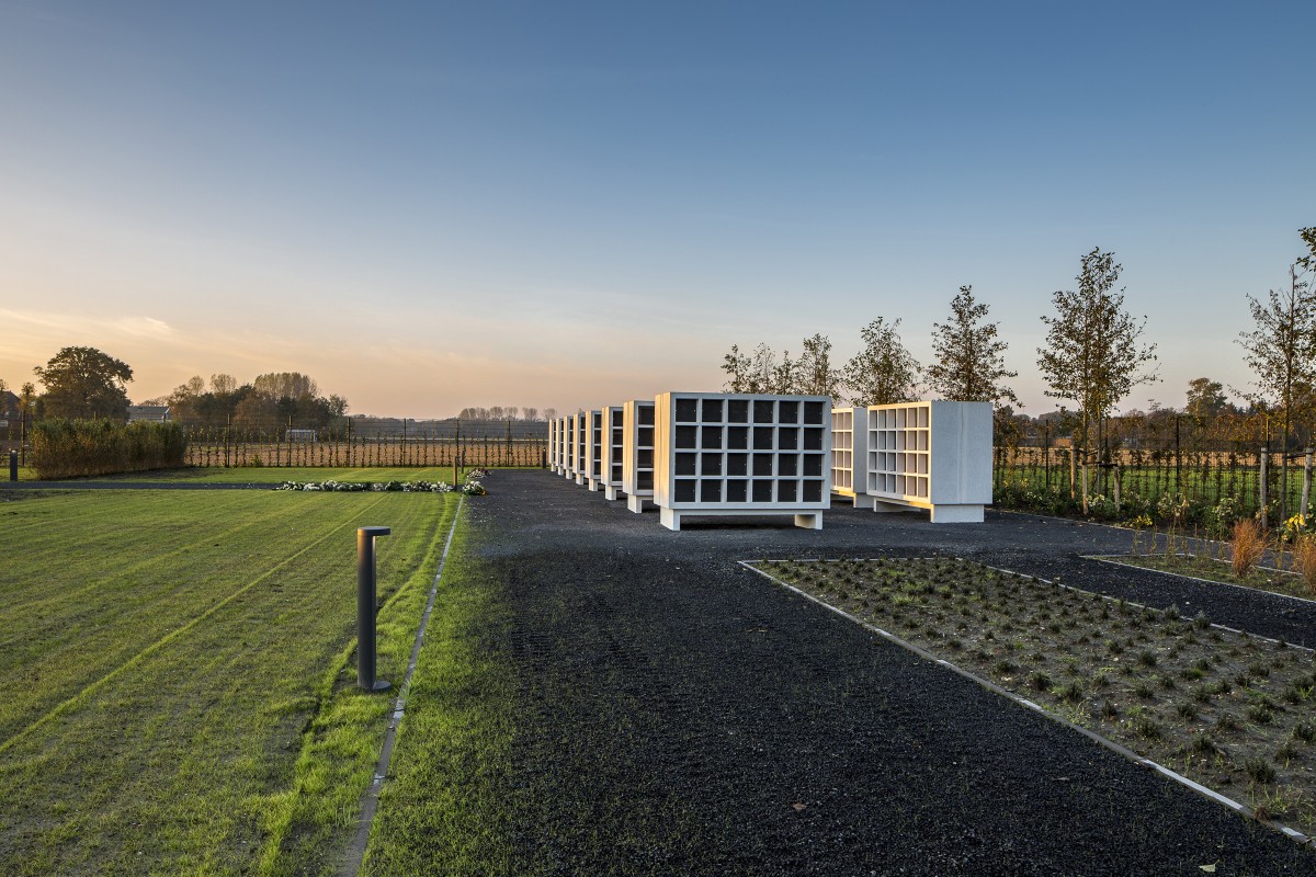 Tussen de bollenvelden in het buitengebied van Lisse ligt het crematorium, waarvan het terrein globaal is opgedeeld in drie delen: entree, gebouw en herdenken.