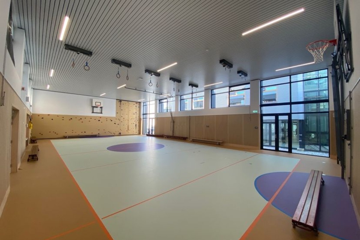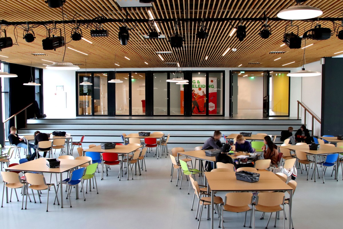 Een toekomstgerichte school was het programma voor de renovatie. Met veel groepsruimtes en individuele leerplekken, een eigen mediatheek voor de onder- en bovenbouw, moderne sportzalen en een ruime aula met een directe verbinding met buiten sluit het ontwerp volledig aan op de toekomstvisie van de school.