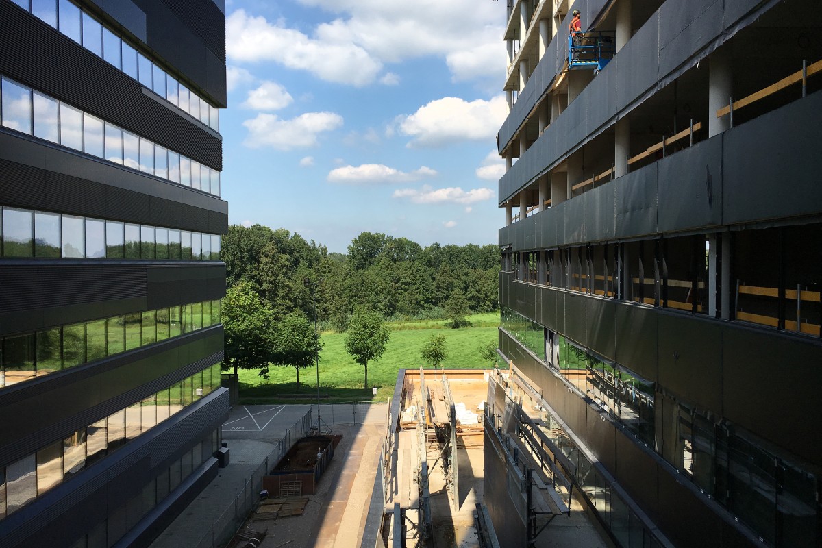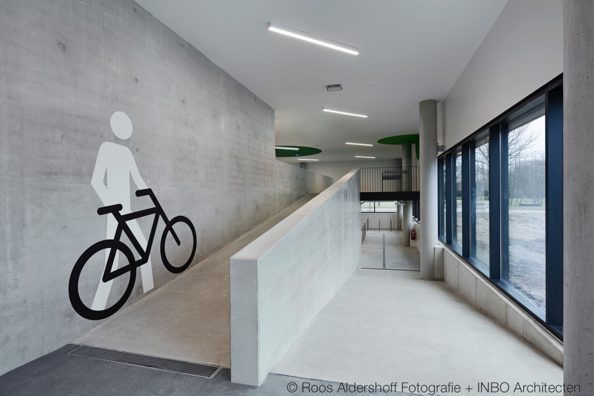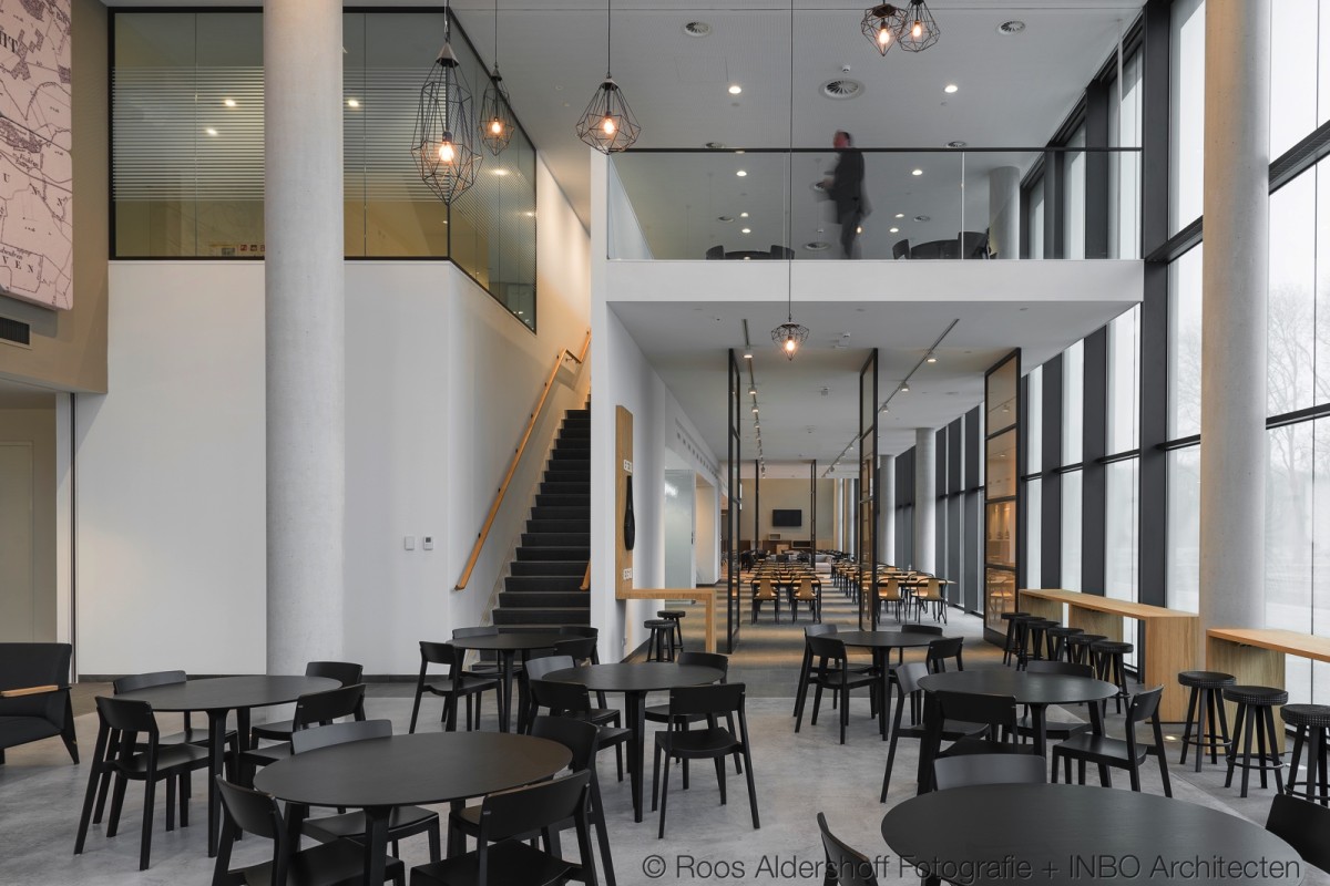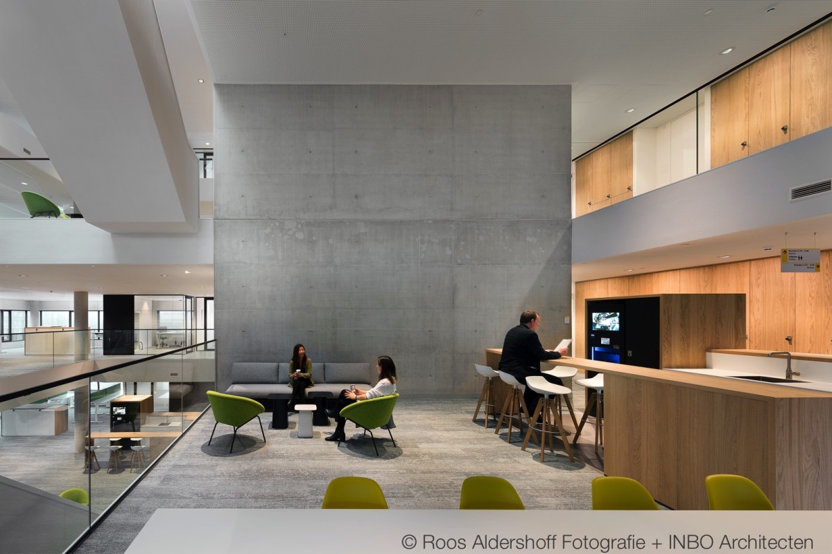 De combinatie van esthetiek en constructie, nodig voor dit project, zorgde voor veel overleg met de architect. Zo is er rekening gehouden in het ontwerp met de uitdrukkelijke wens voor schoonwerkwanden. Door de hoog gestelde eisen aan de uitvoering van de wanden kreeg SWINN de schoonbetoncoördinatieopdracht. De keus voor puntvormig ondersteunde gewichtsbesparende vloeren leverde de architect maximale vormvrijheid op. Daarbij is de vlakke onderzijde van de vloer ideaal voor de installateurs om mee te werken. De gevel is niet dragend gemaakt en verbeeldt de horizontale gelaagdheid van diverse grondlagen: een mooie verwijzing naar de onderwijsinstelling die gebruik maakt van het gebouw.