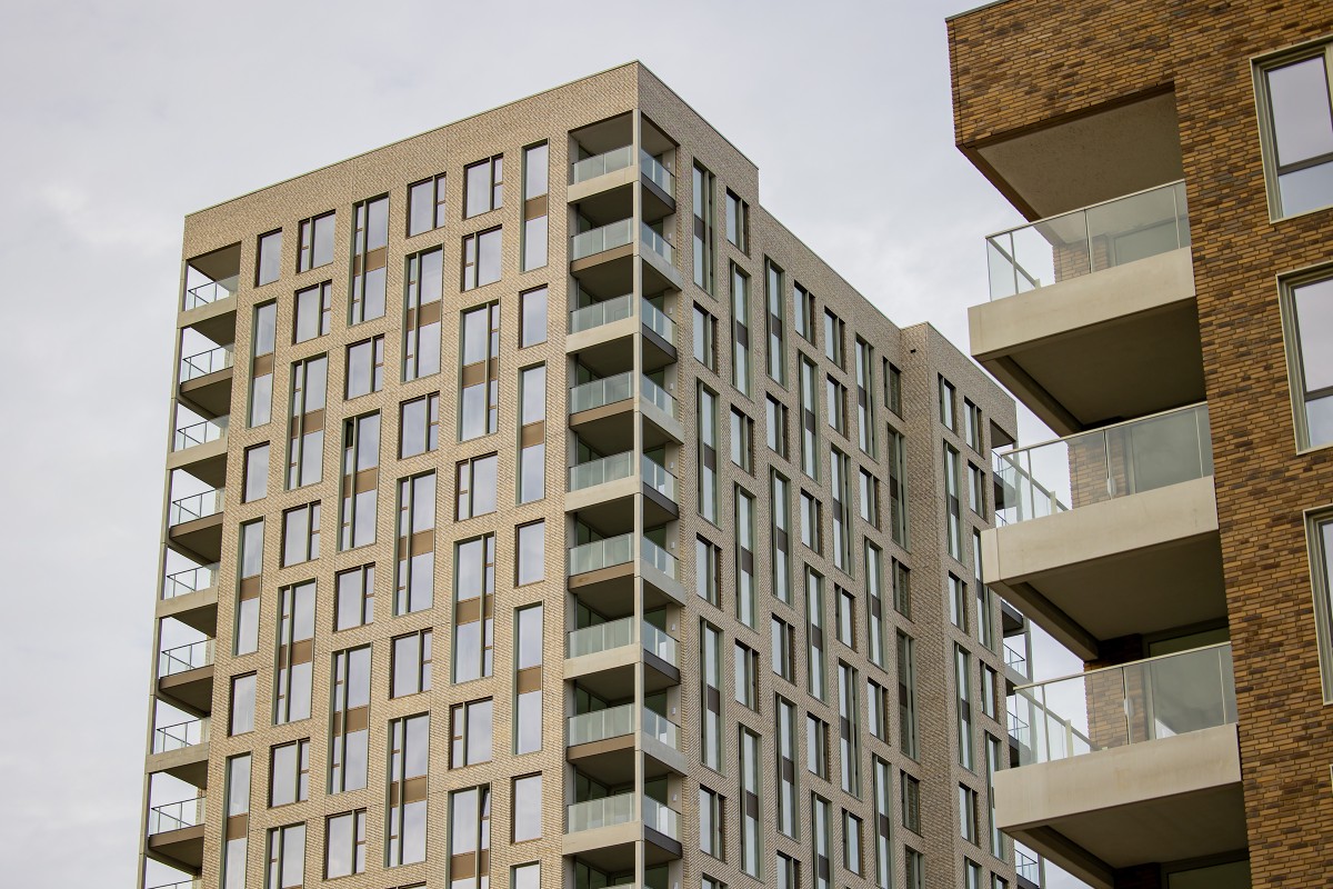 De parkeergarage en kelder zijn gerealiseerd met behulp van de traditionele gietbouwmethode, waarbij dragende wanden en breedplaatvloeren werden gebruikt. Voor de bovenbouw hebben we gekozen voor tunnelbouw in combinatie met prefab wanden, balkons en trappen. Dankzij deze aanpak kon elke vijf tot zes dagen een complete verdieping worden gerealiseerd.