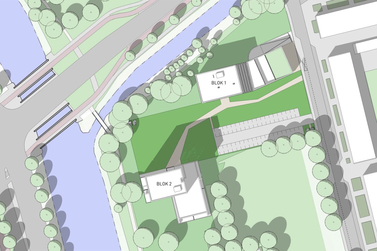 Twee woontorens van 7 en 20 woonlagen met een bvo van ca. 16.000 m² en een ondergrondse parkeergarage van ca. 3.000 m² met een eigen entreegebouw.