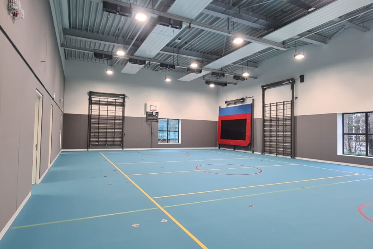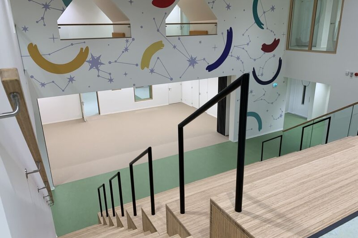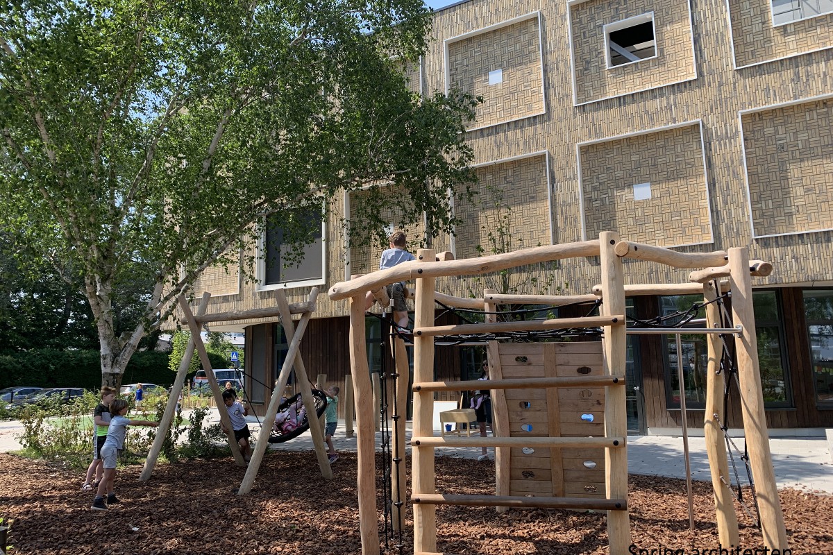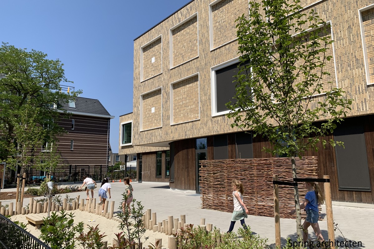 Kindcentrum van ca. 3.000 m² met een BSO, kinderdagverblijf, peuterspeelzaal en gymzaal. Centraal is er een aula met tribune en speellokaal.