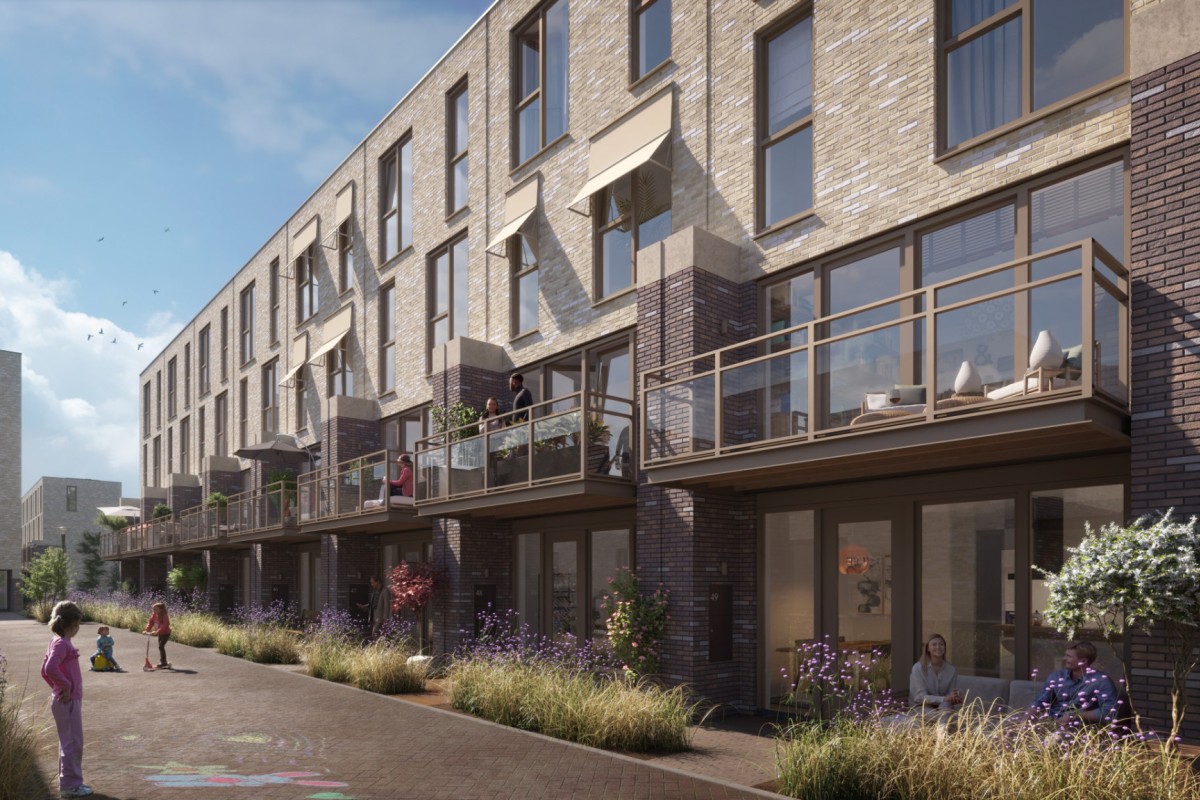 Woningbouwproject met een diversiteit aan woontypes, gelegen naast het spoor.
