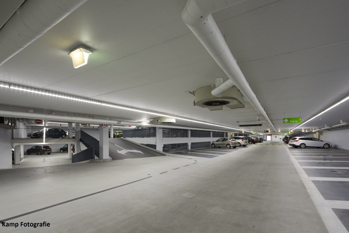 Onder het nieuwbouwgedeelte is een splitlevel parkeergarage aangelegd van ca. 10.000 m² verdeeld over vijf bouwlagen, waarvan 1,5 bouwlaag verdiept.