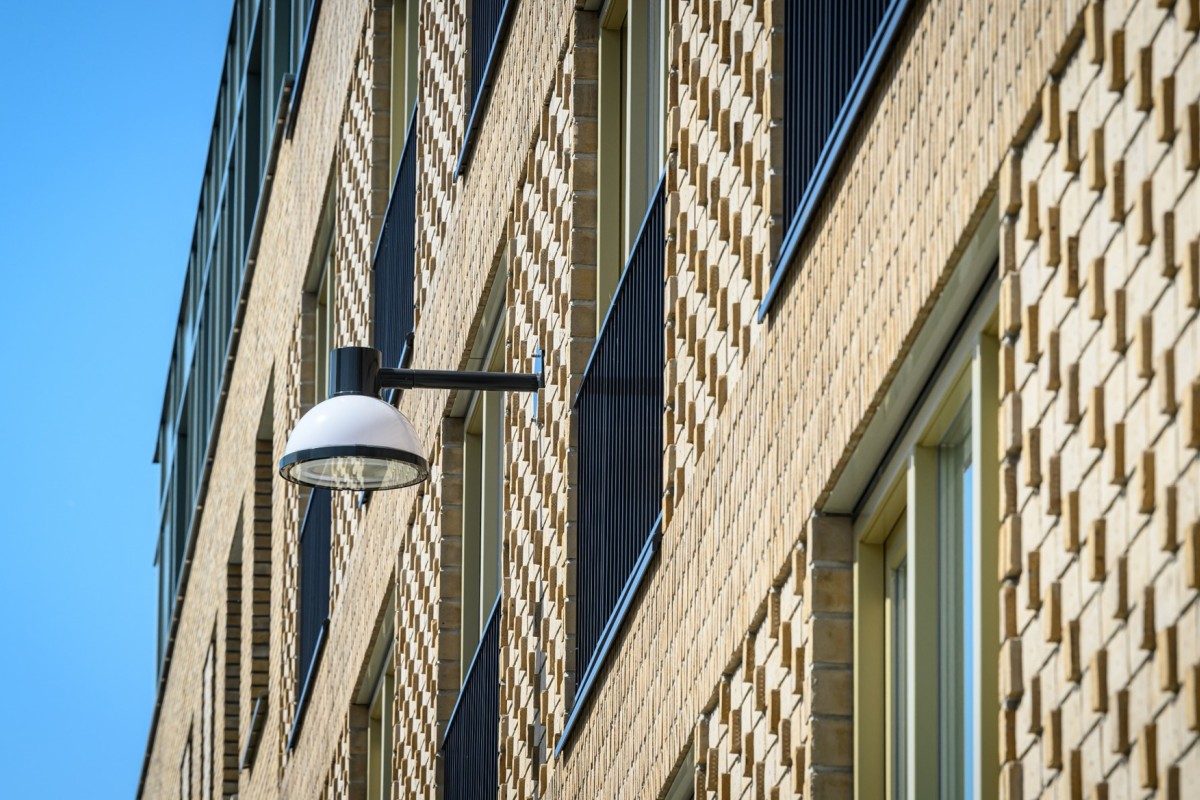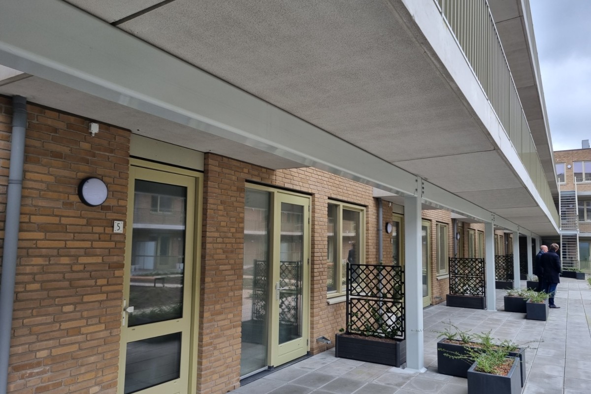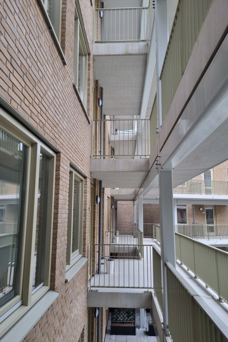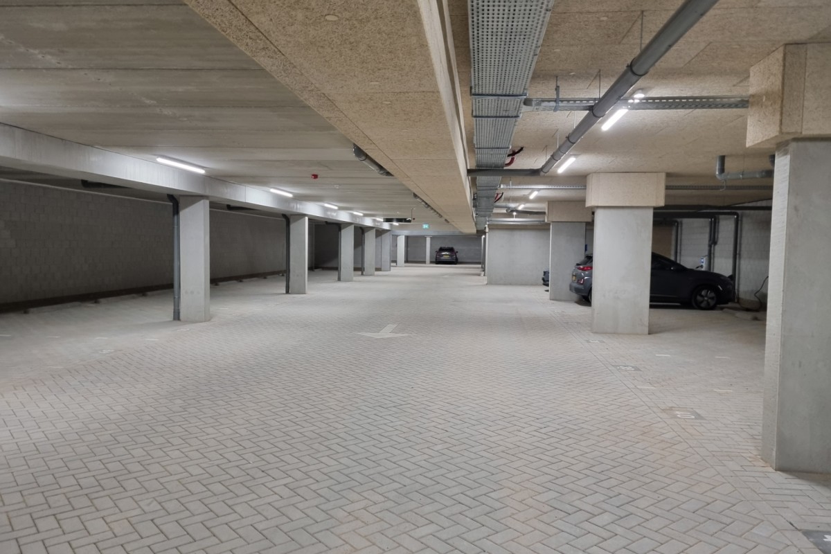 Twee gesloten bouwblokken voor 208 appartementen met een collectieve tuin en een parkeergarage.