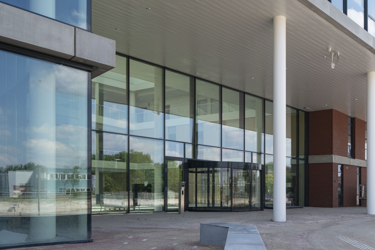 Tijdens het ontwerpproces hebben we verschillende constructieve varianten beschouwd en een aantal keuzes open gehouden. In het begin van het DO hebben we in samenspraak met het ontwerpteam en de beoogde aannemer definitieve keuzes gemaakt op basis van flexibiliteit, kosten en uitvoerbaarheid. Op basis van alle afwegingen hebben we de hoofddraagconstructie ontworpen in prefab betonkolommen met in het werk gestorte betonvloeren voorzien van voorspanning zonder aanhechting. Hierdoor hebben we de relatief grote vloervelden toch van een slanke, economische vloer kunnen voorzien.