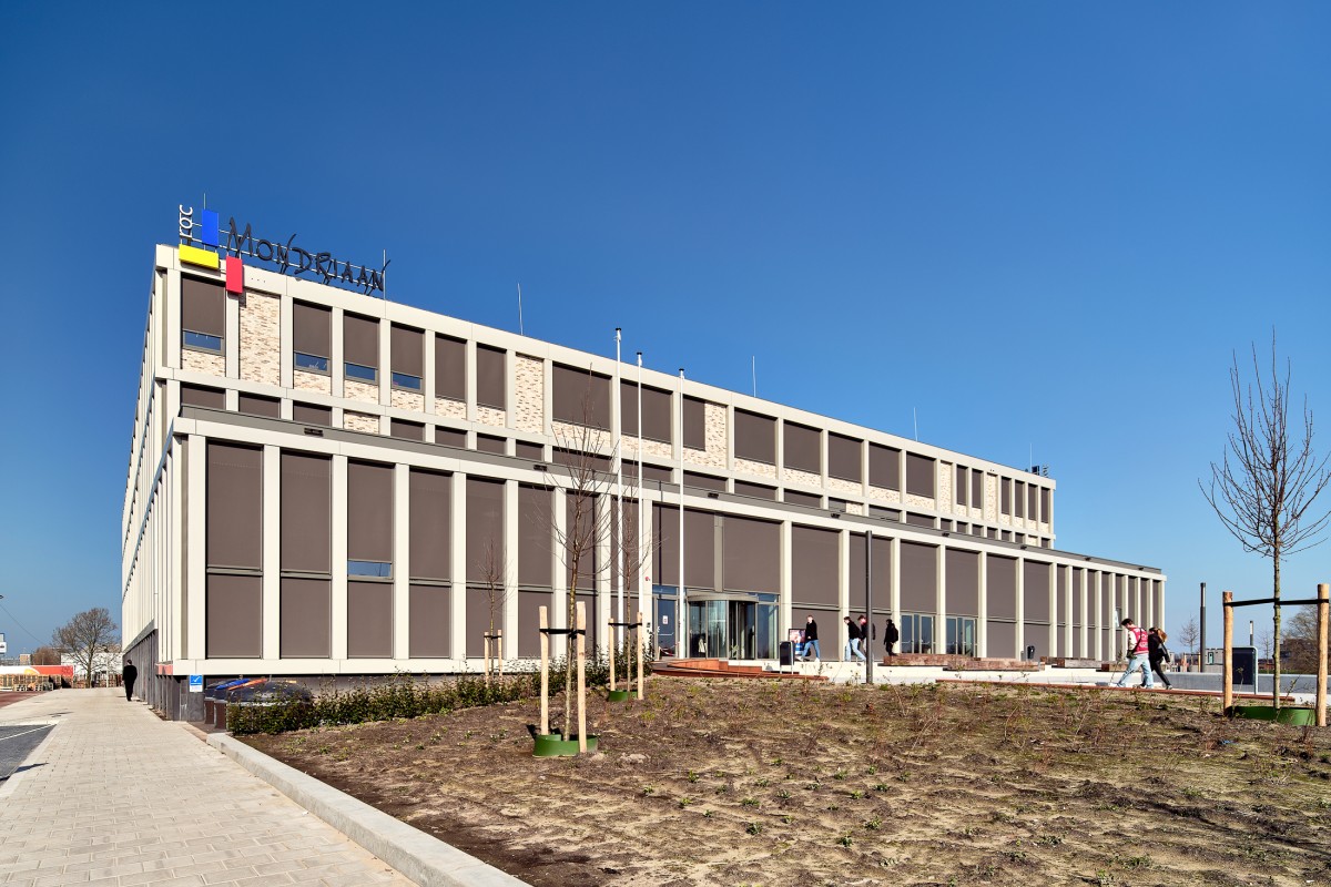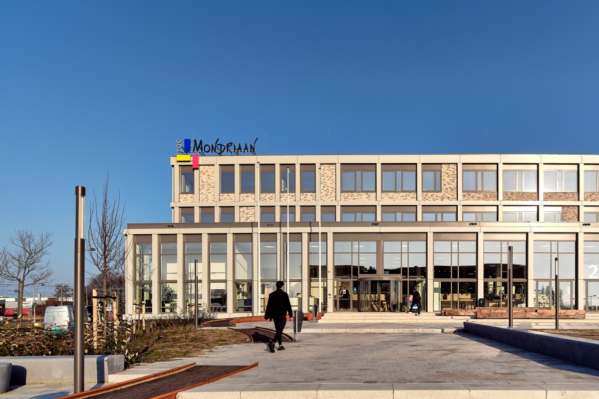Het moderne gebouw van ROC Mondriaan, dat 13.800 m² beslaat en vier verdiepingen telt, herbergt drie verschillende MBO-opleidingen. Elke opleiding heeft een eigen verdieping, die onafhankelijk is ontworpen met een unieke levensduur en architectonische uitstraling.