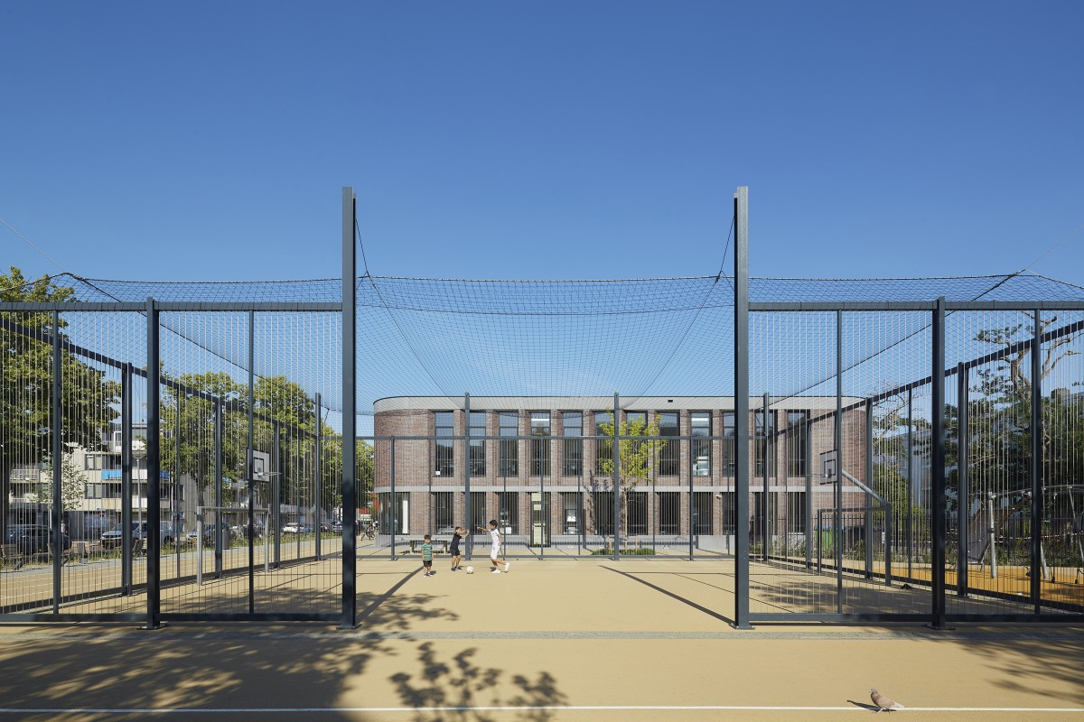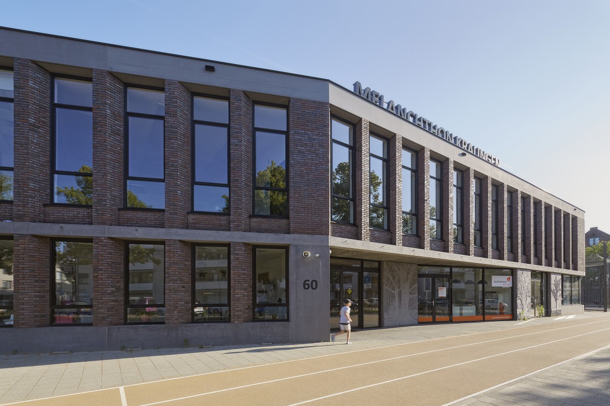 De school in de wijk Kralingen sluit aan bij de kenmerkende jaren ’30 baksteenarchitectuur van de buurt. Oude stijlelementen, zoals ranke aluminium kozijnen en afgeronde hoeken, zorgen voor een uitstraling die aansluit bij de omgeving.